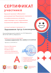 - Региональный этап Национального чемпионата «Абилимпикс» (профессиональное мастерство среди лиц с ОВЗ), Сертификат участника;