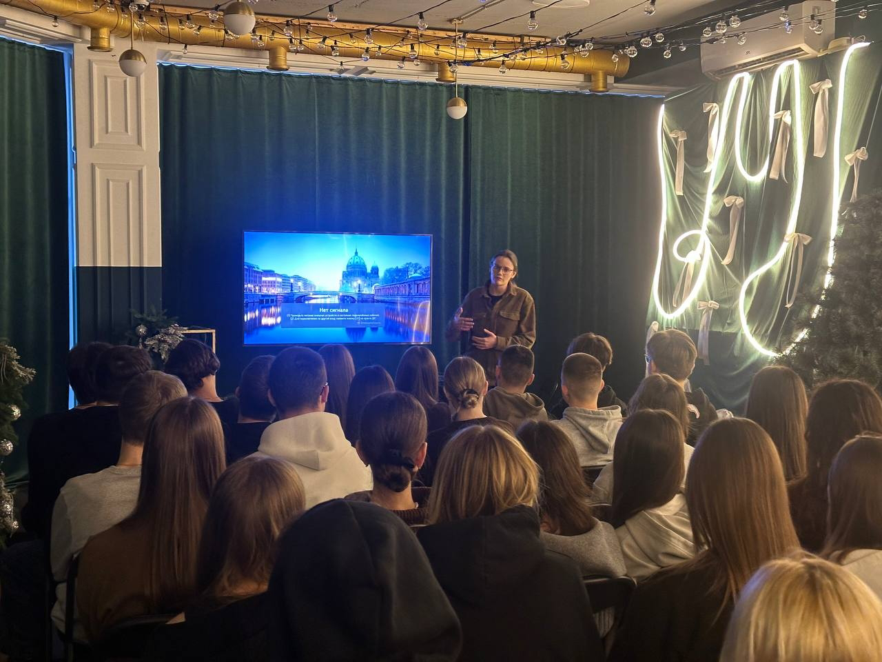 Ребята подготовили презентацию, которая была очень интересная и познавательная. Мы узнали более подробно о волонтёрском движении в КФУ, о празднике «Медовуха» в МГУ посвященный к Дню студента,о вручении свидетельств со знаком Святой Татьяны для лучших студентов в Питерских университетах к Дню студента и ещё раз об истории праздника!