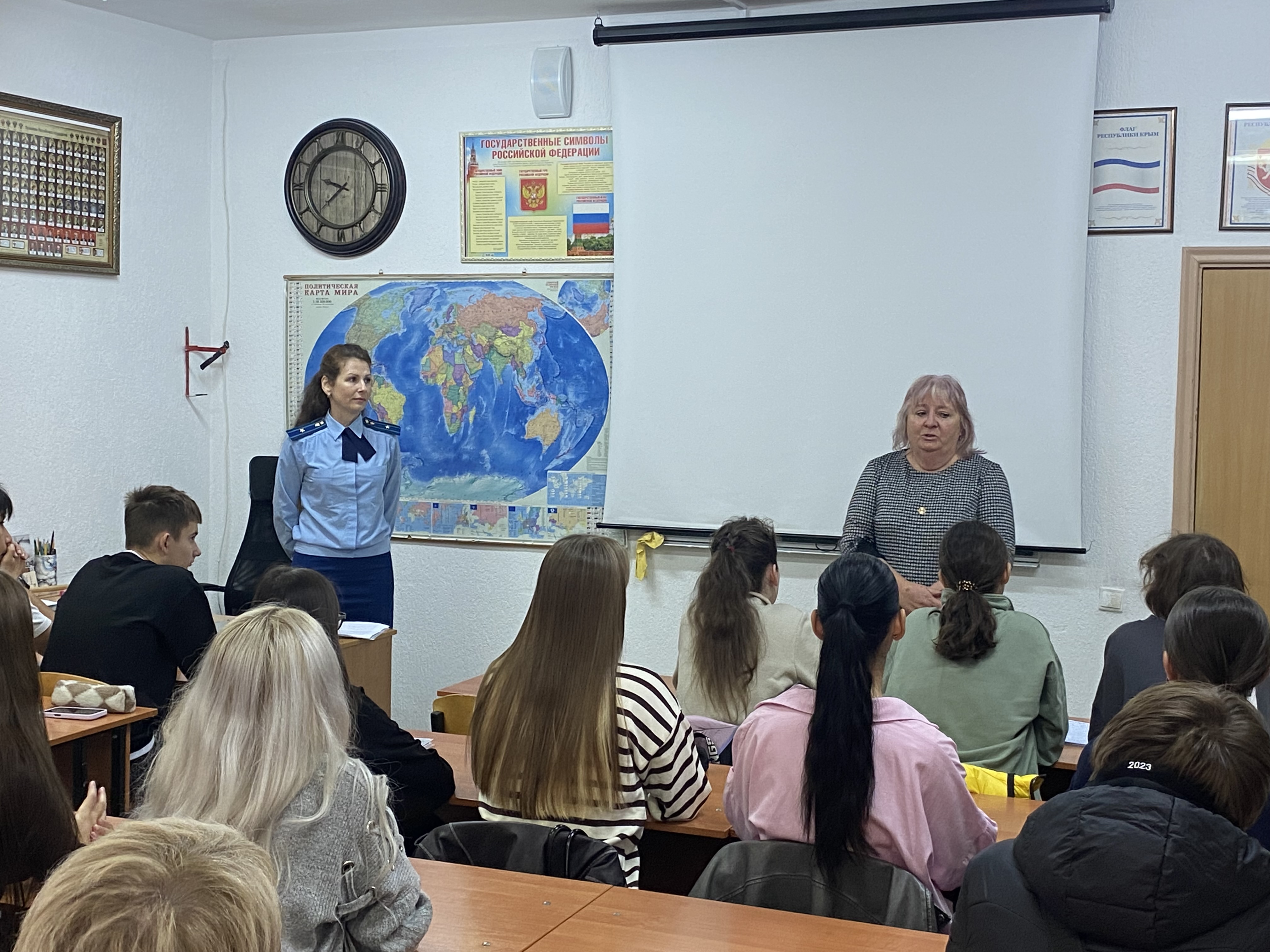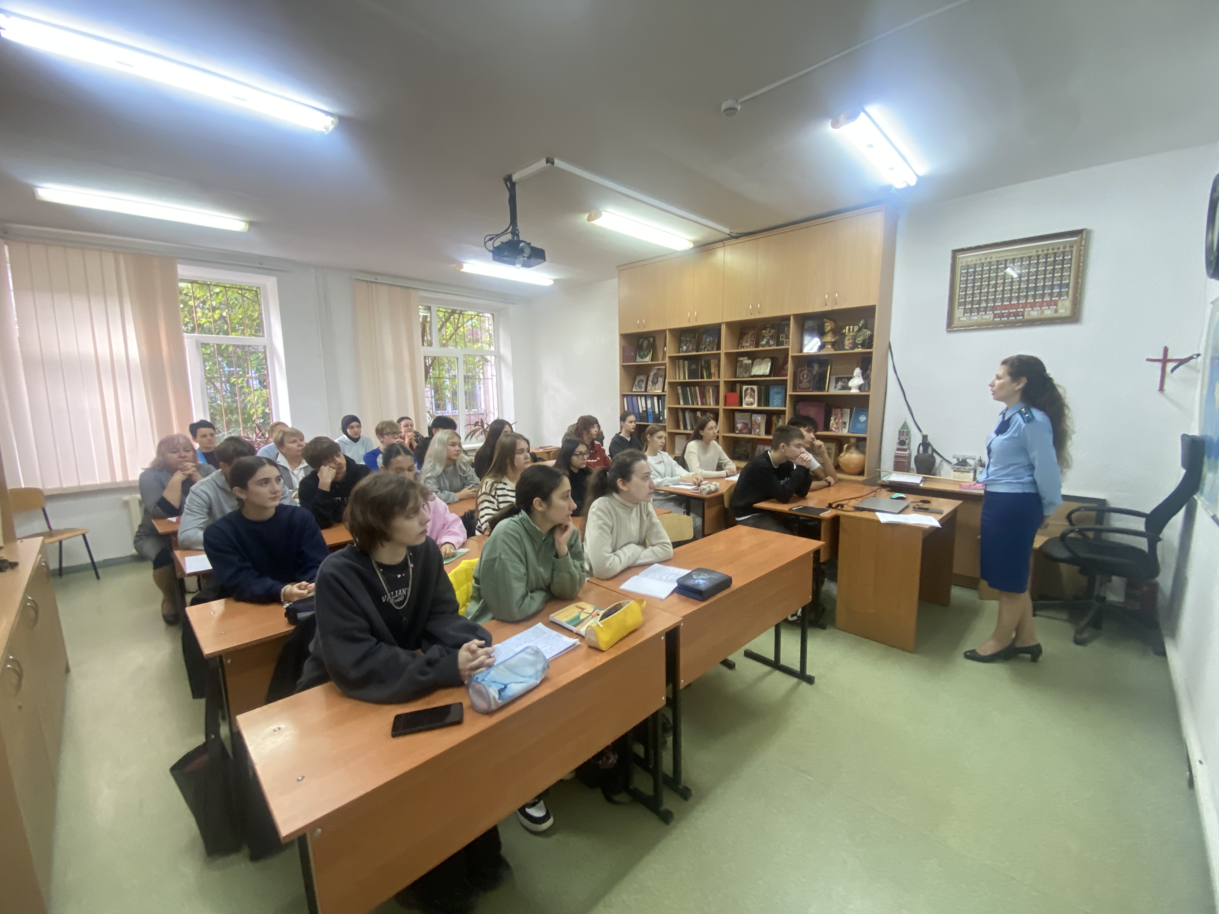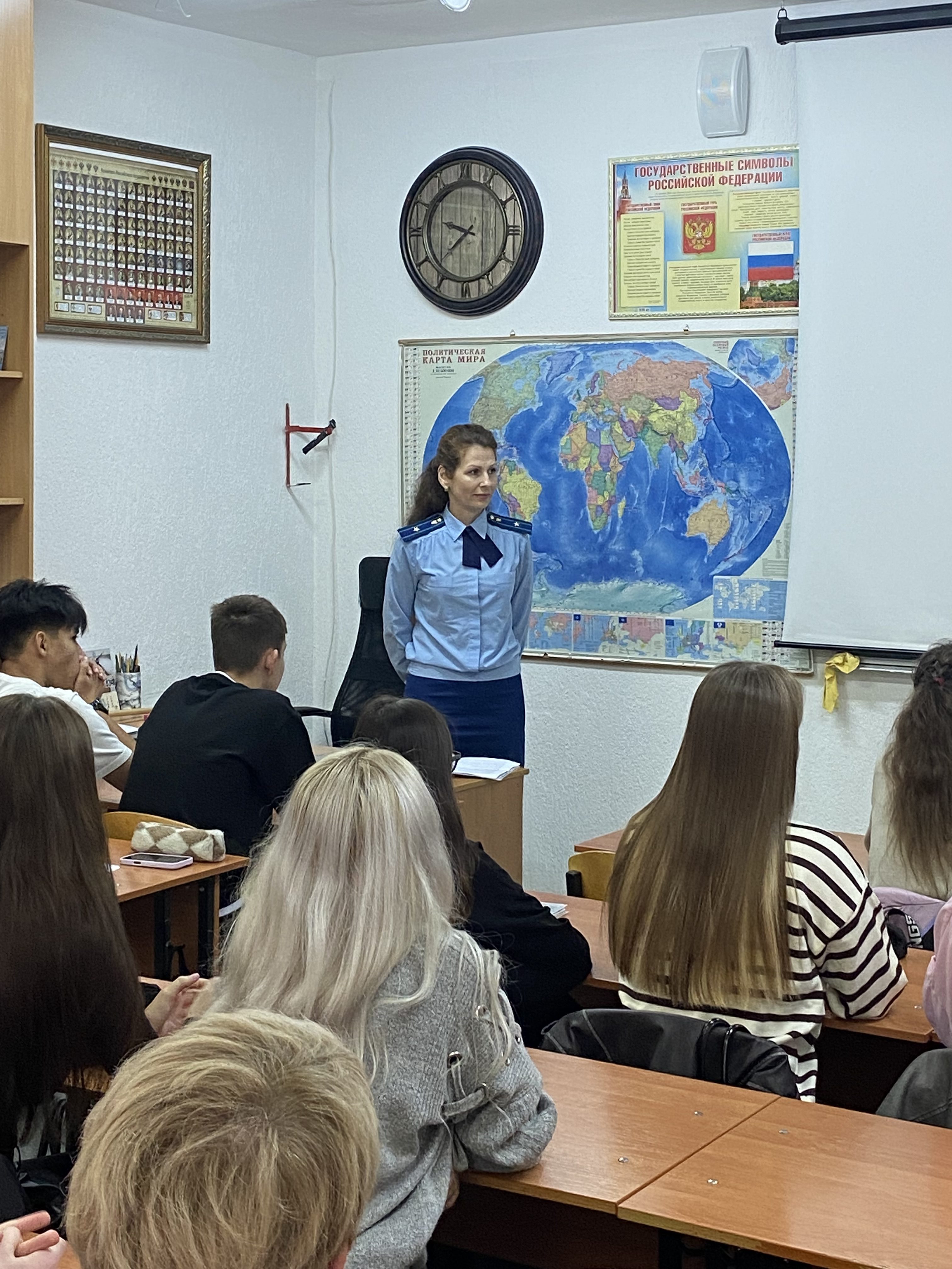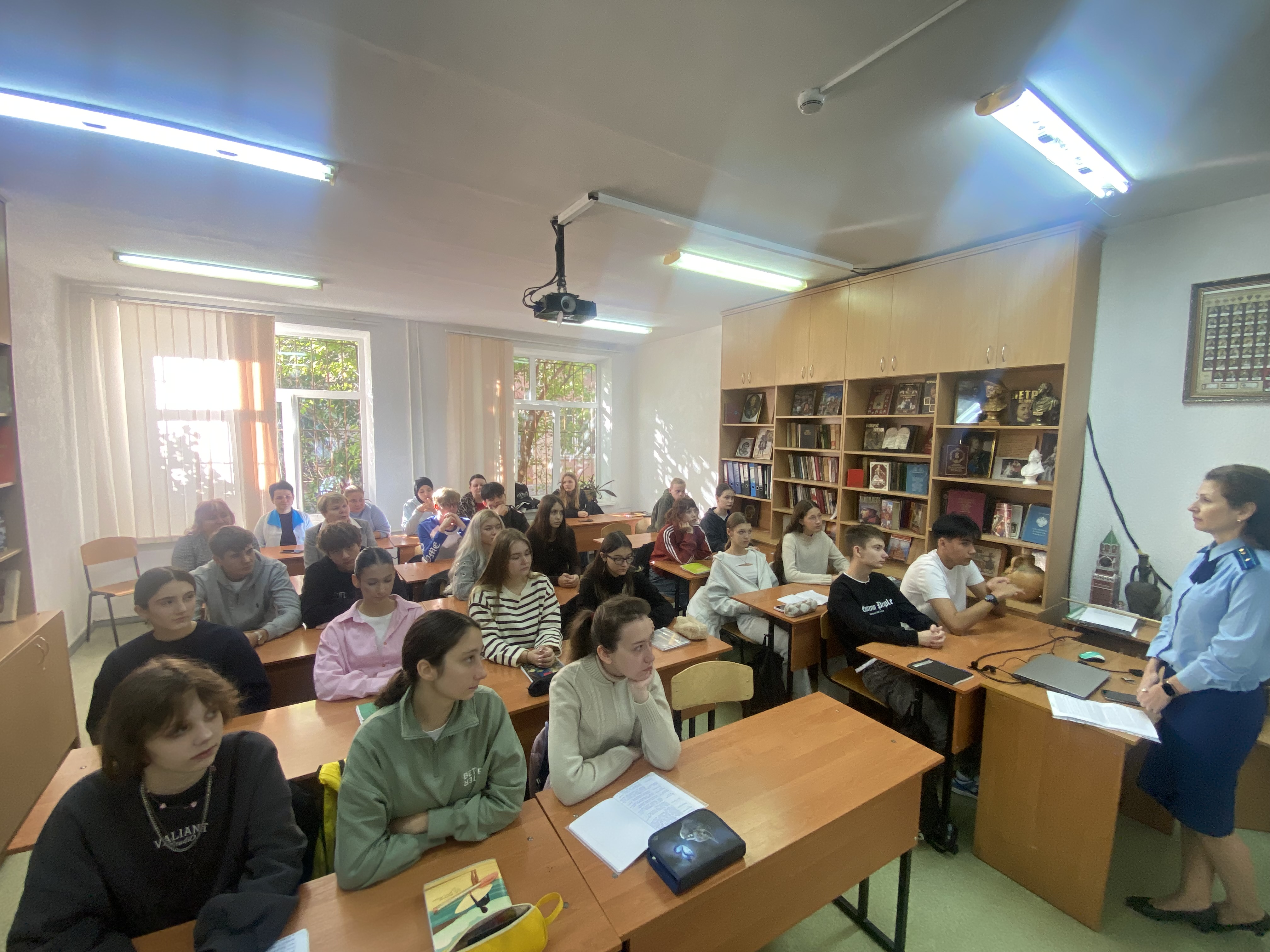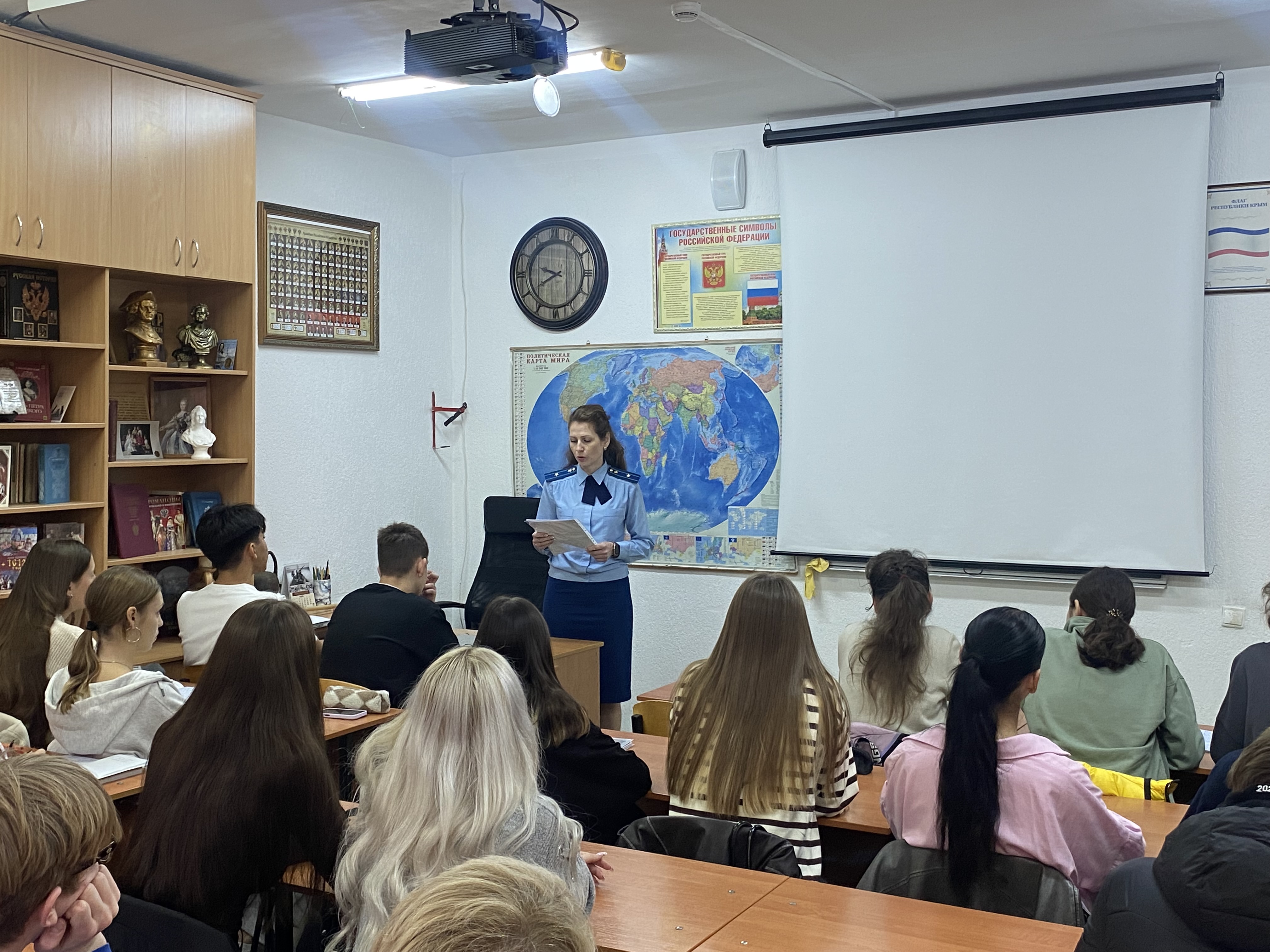 17.10.2025 г. для обучающихся и преподавателей Таврического колледжа прошла лекция-беседа с помощником прокурора г. Симферополя Анной Александровной Обер.