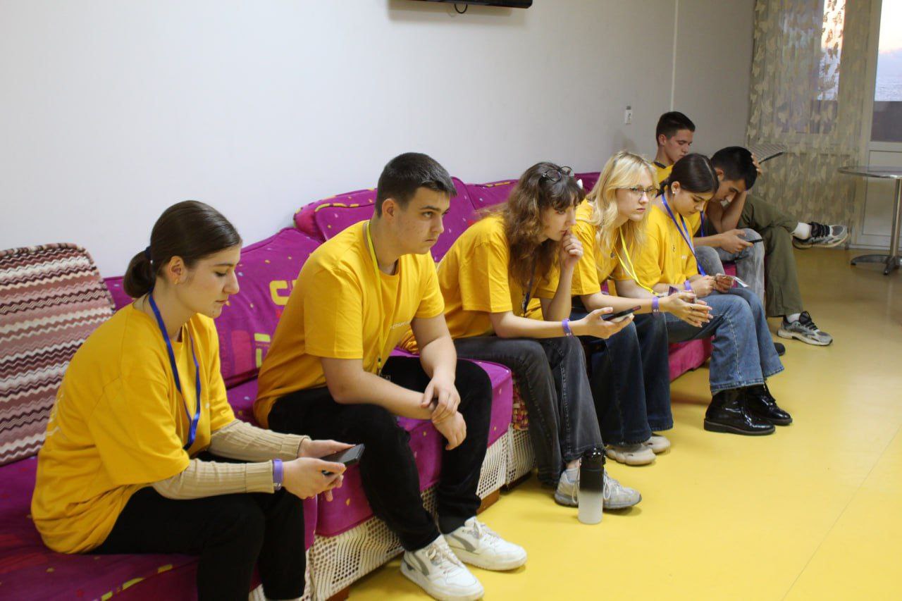Участники мероприятия от нашего колледжа Лиля, Саша, София, Софья, Роман и Максим — каждый активно участвует в разработке игры своей команды. Я, как и все руководители делегаций от учебных заведений, являюсь куратором одной из команд.