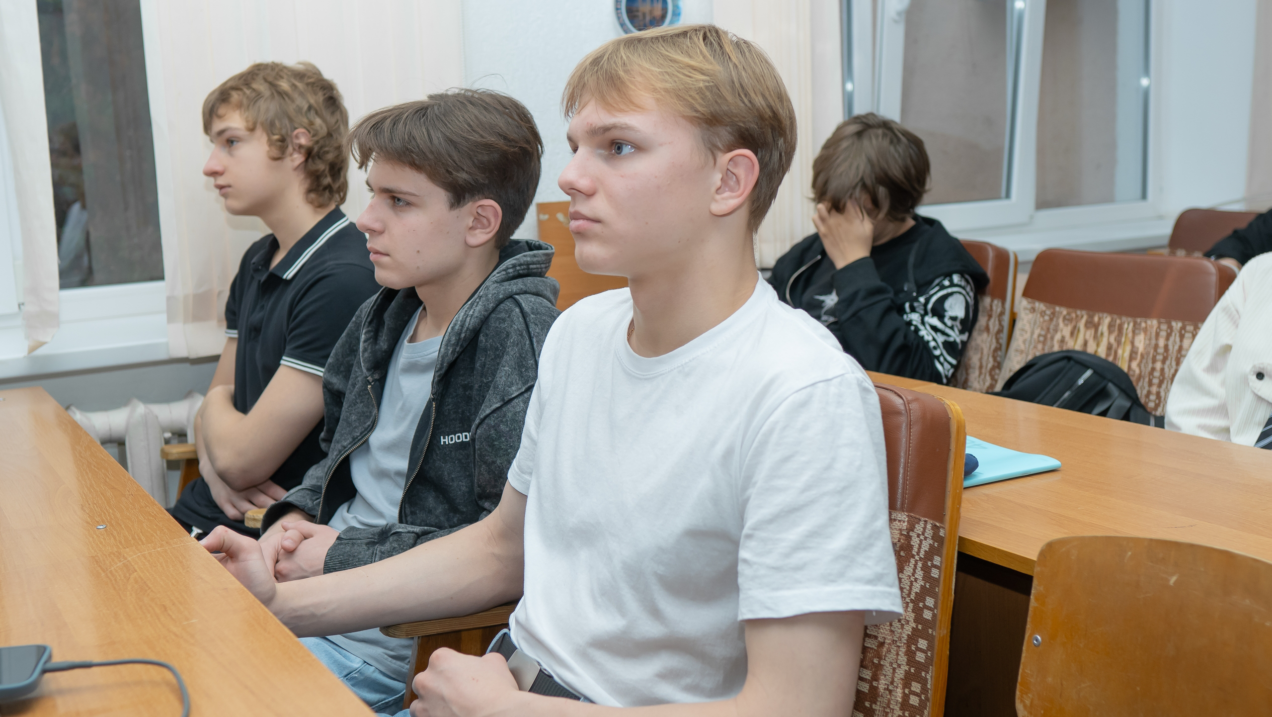 Васильев Егор Андреевич, специалист по работе с молодежью Центра мониторинга сети Интернет «Дома Молодежи», поговорил со студентами о том, что защита своего государства — это зона нашей ответственности. Во время беседы проводились исторические параллели с современностью. Как мужество и ответственность наших предков не единожды спасали страну от разорения захватчиками.