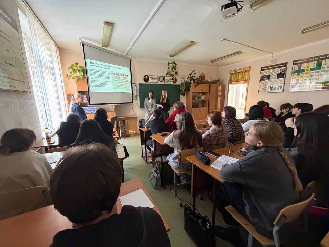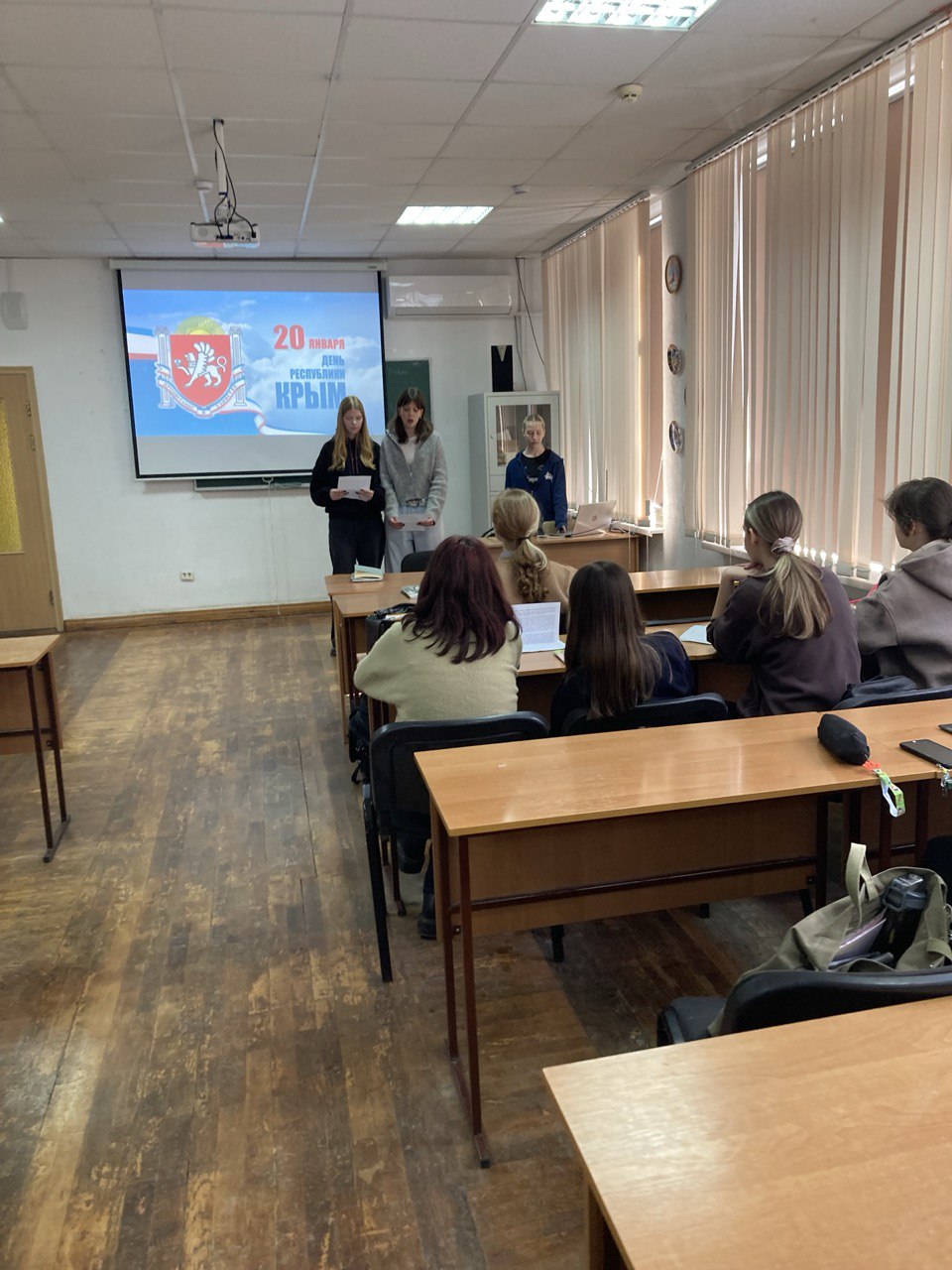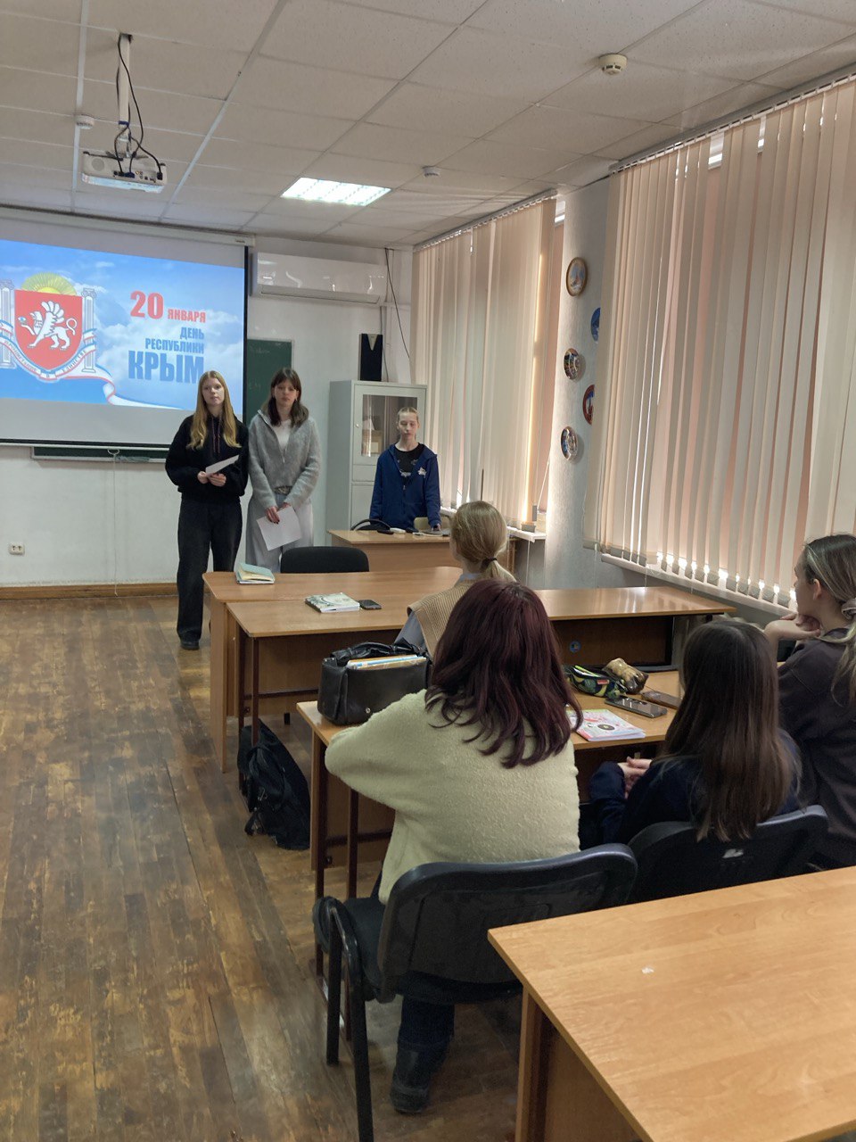 20.01.2026 г. в Таврическом колледже активистами первичного отделения «Движение Первых» были проведены беседы, посвященные Дню Республики Крым.