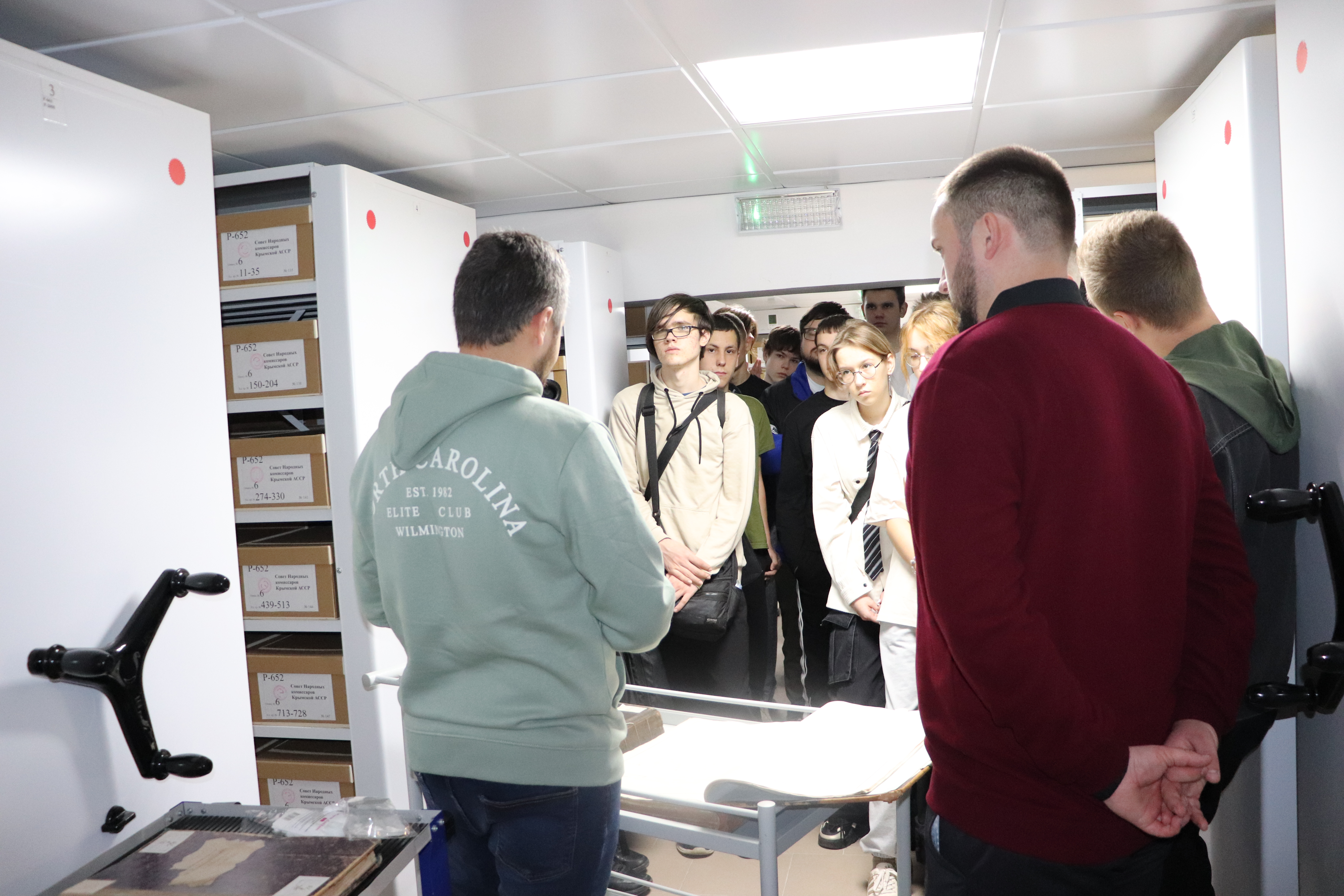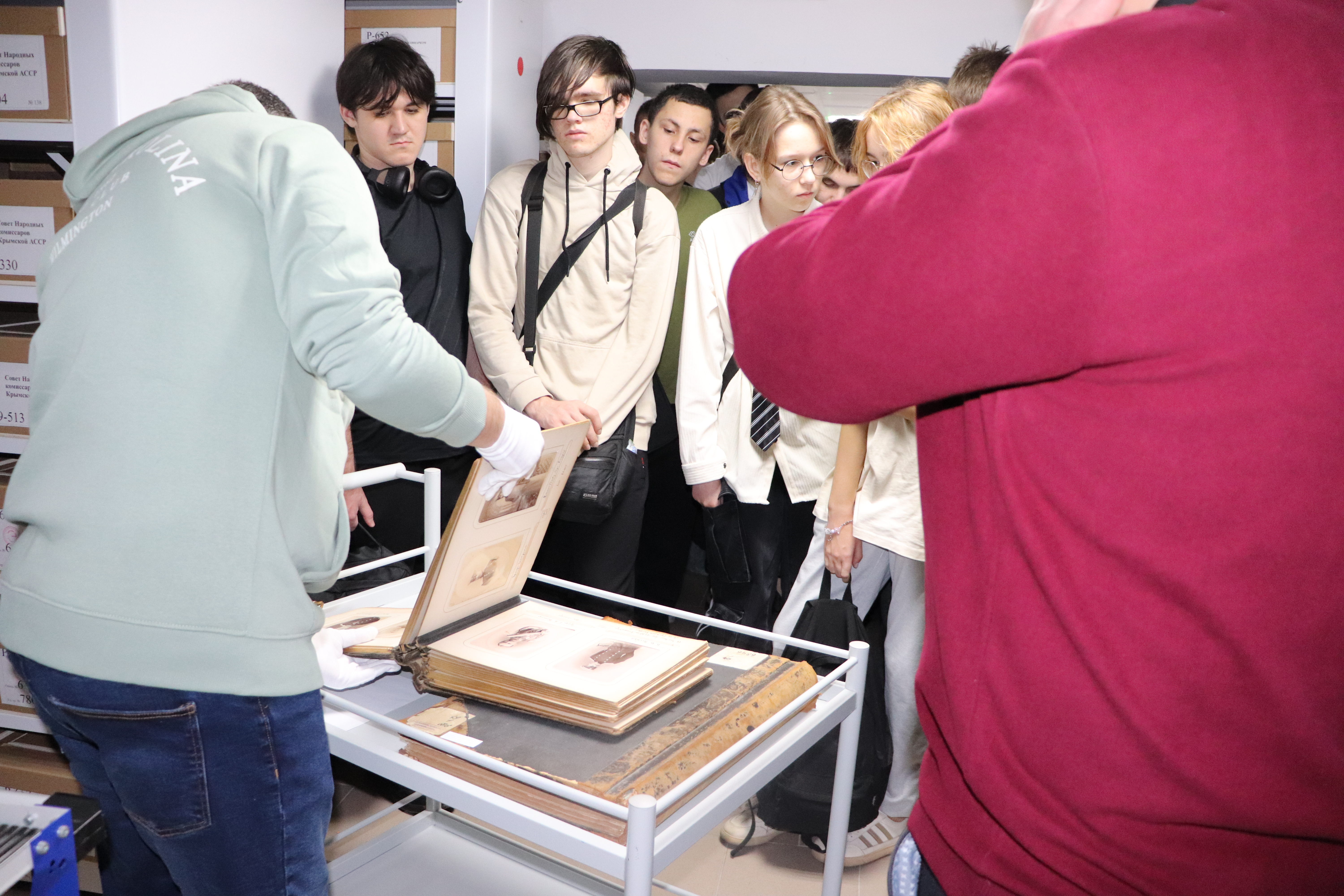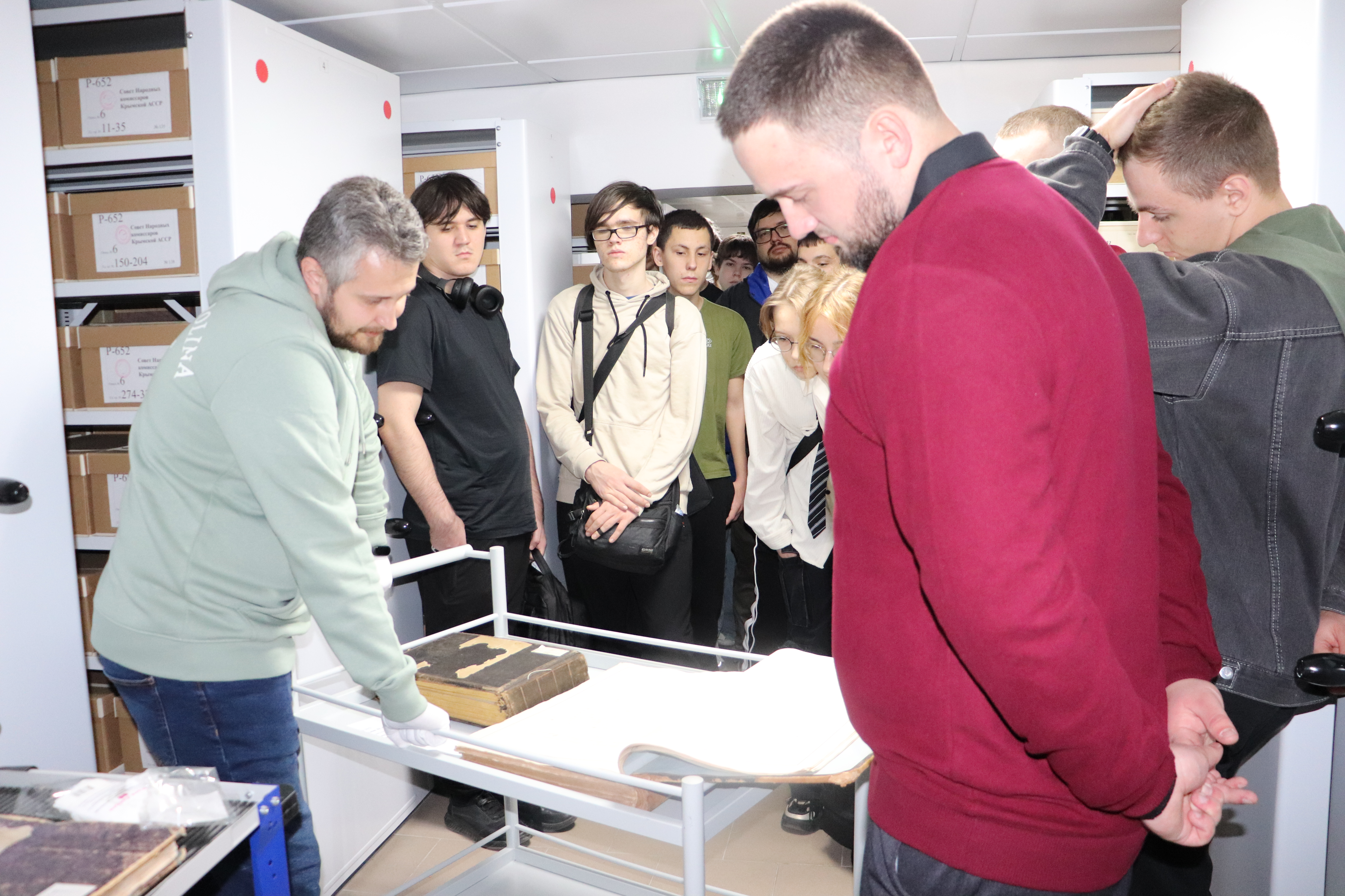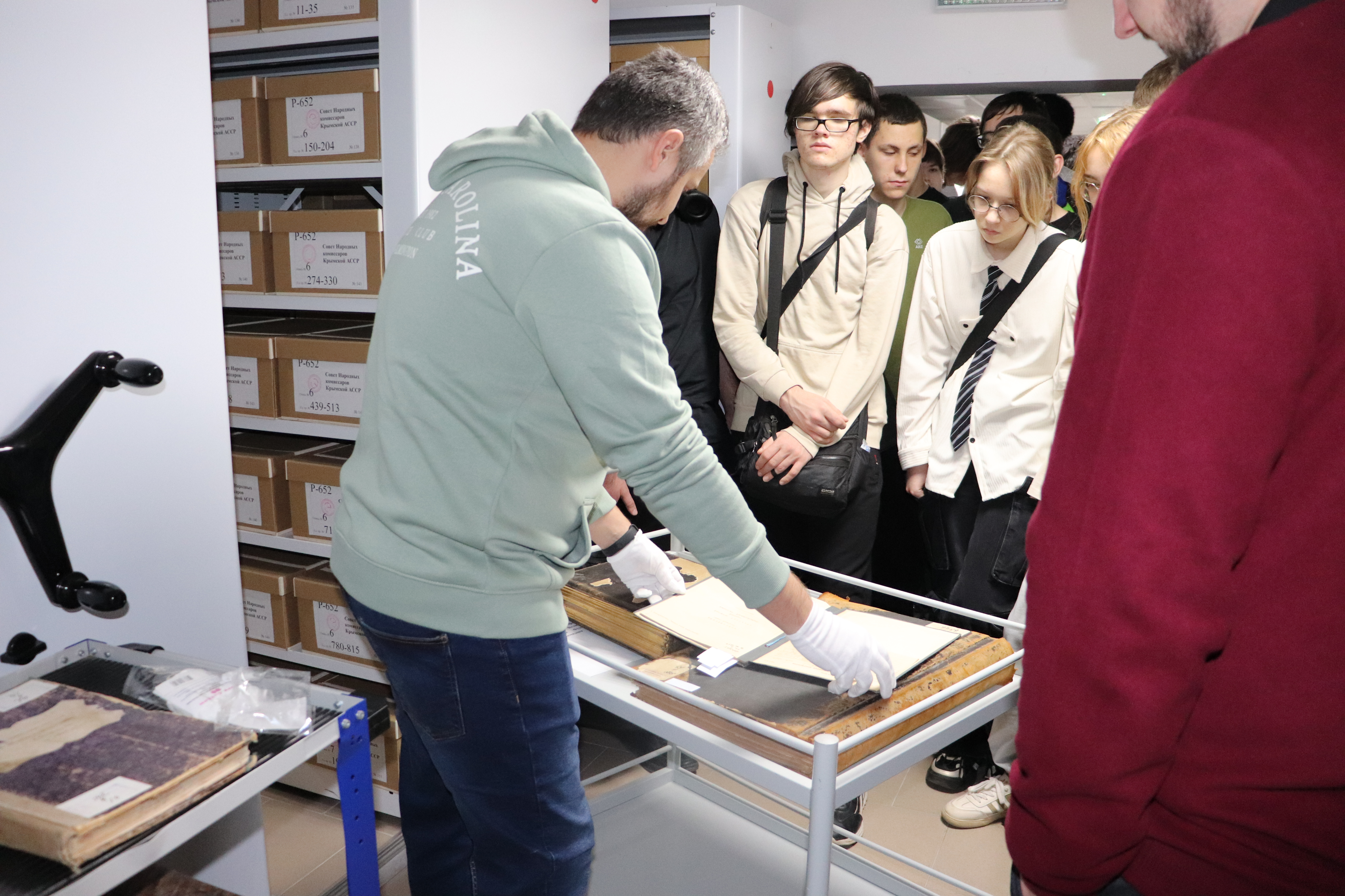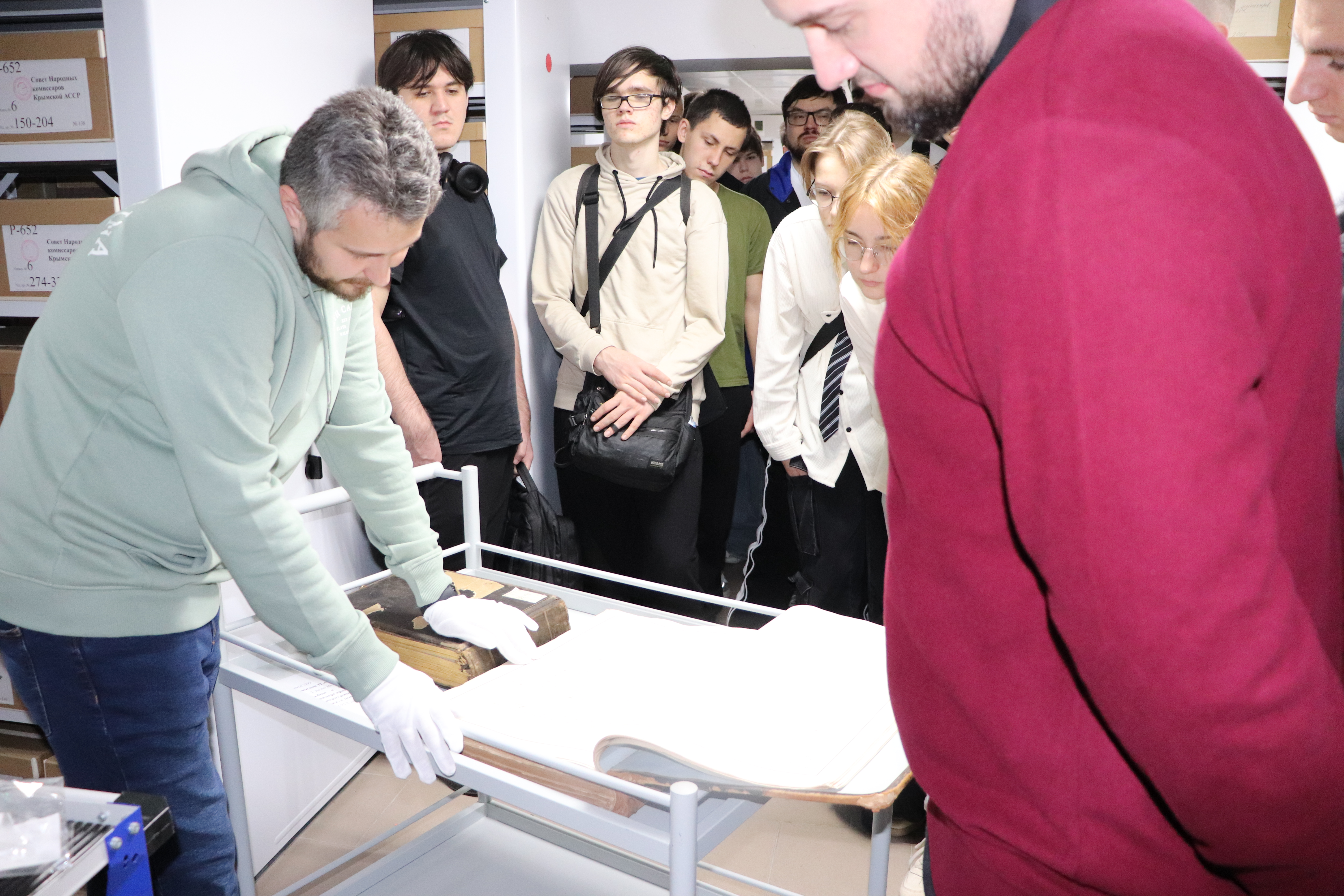 18.11.2025 г. В рамках работы «Школы юного архивиста» в Государственном архиве Республики Крым (Госархив) прошла экскурсия для обучающихся Таврического колледжа КФУ им. В.И. Вернадского. Ребята познакомились с особенностями работы крымских архивистов, историей становления архивной системы полуострова, особенностями хранения исторических документов. Студенты побывали в читальном зале, архивохранилище, смогли увидеть работу по оцифровке и реставрации архивных дел.