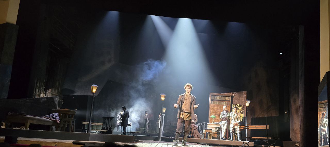 Постановка для этого театрального сезона премьерная (первый показ был в конце августа). Это очень мощный спектакль. Не простой пересказ романа, но прочтение режиссёра. Совершенно объёмная сцена, где Петербург — истинный герой, а не просто место действий, много символов. Восторг! Спектакль длился 4 часа. Но было ИНТЕРЕСНО. Ребятам настолько понравилось, что они отмечали, что готовы были смотреть и дольше, а кто-то даже выразил желание еще раз посмотреть.