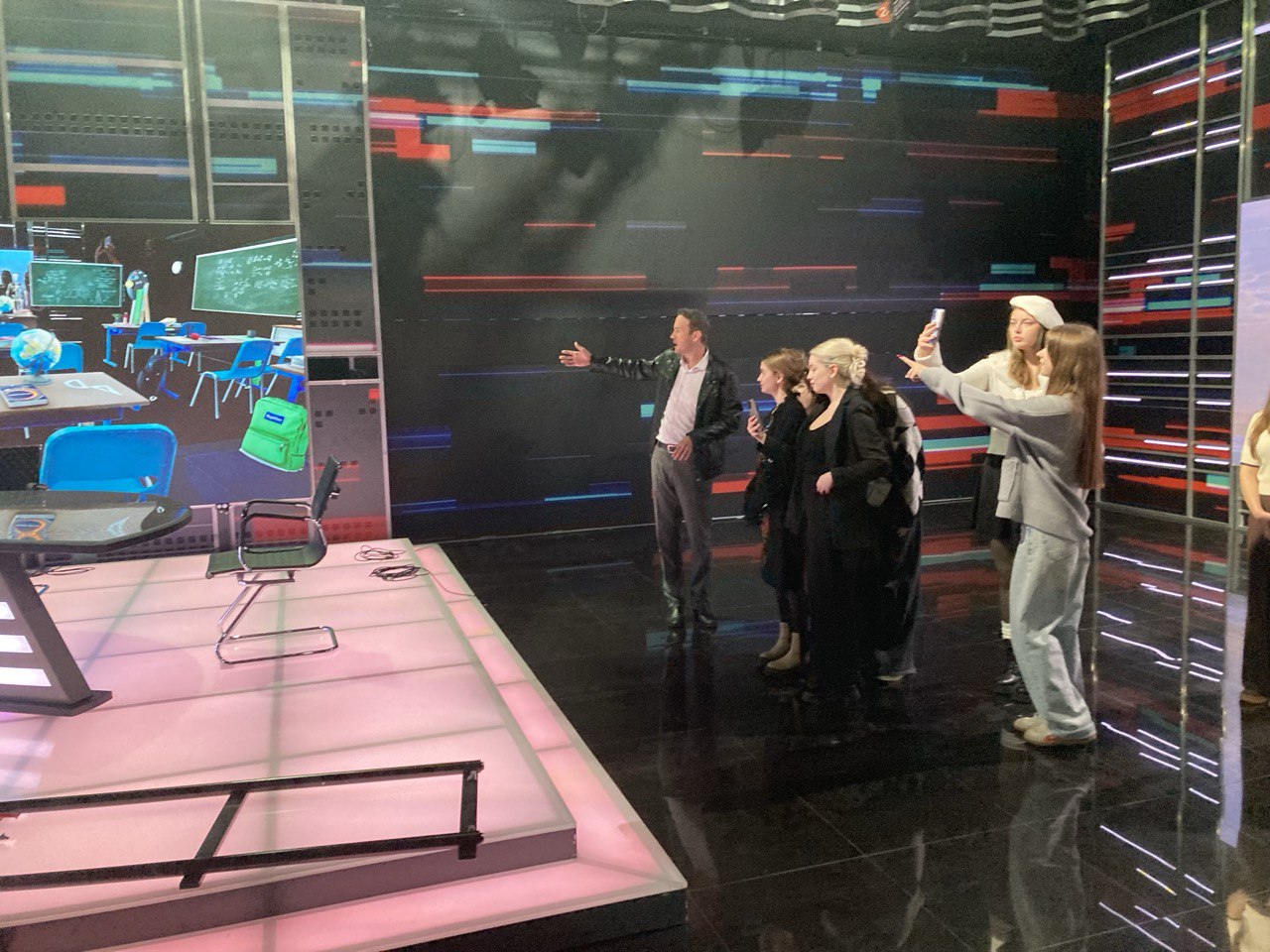 Экскурсию для студентов проводил корреспондент, автор и ведущий телепрограмм Сергей Мельников. Ребята посетили несколько студийных площадок, поработали с оборудованием. Телеведущий познакомил студентов с историей телекомпании, провел экскурсию по небольшому музею.