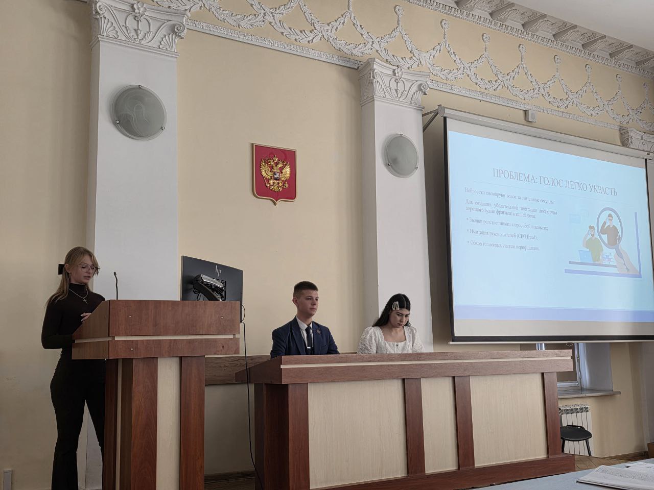 Наш колледж представляла студентка группы 2ИСП2 Горбенко Анастасия с докладом на тему «Защита голосовой идентичности: как сделать свой голос «ядовитым» для AI-клонировщиков», которая показала достойный результат и удостоилась особого внимания жюри.