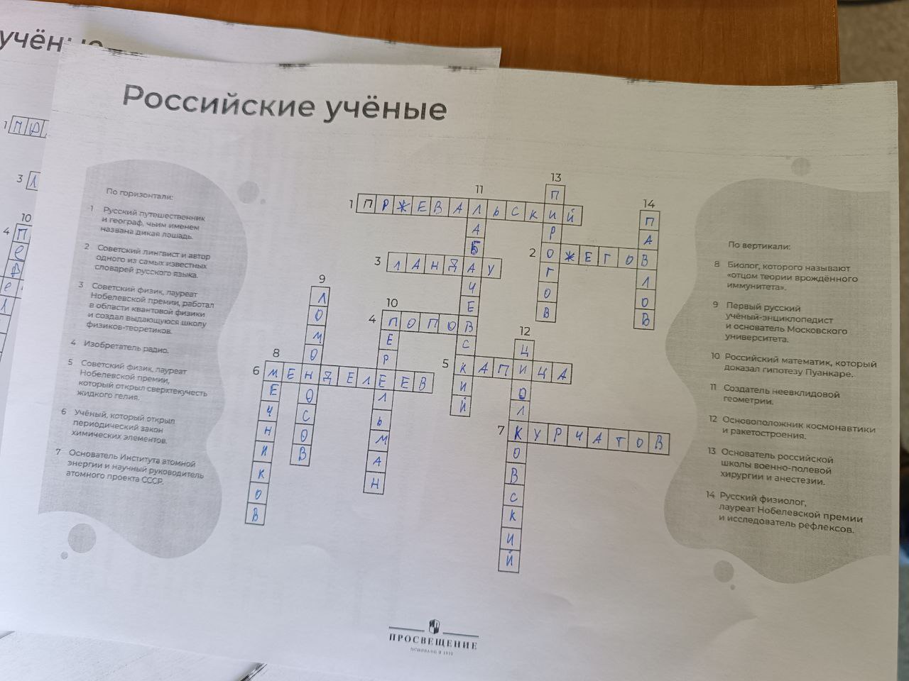 Куратор рассказала о выдающихся русских учёных внесших вклад в мировую науку. После презентации студенты, работая в парах, разгадали кроссворд «Российские ученые».