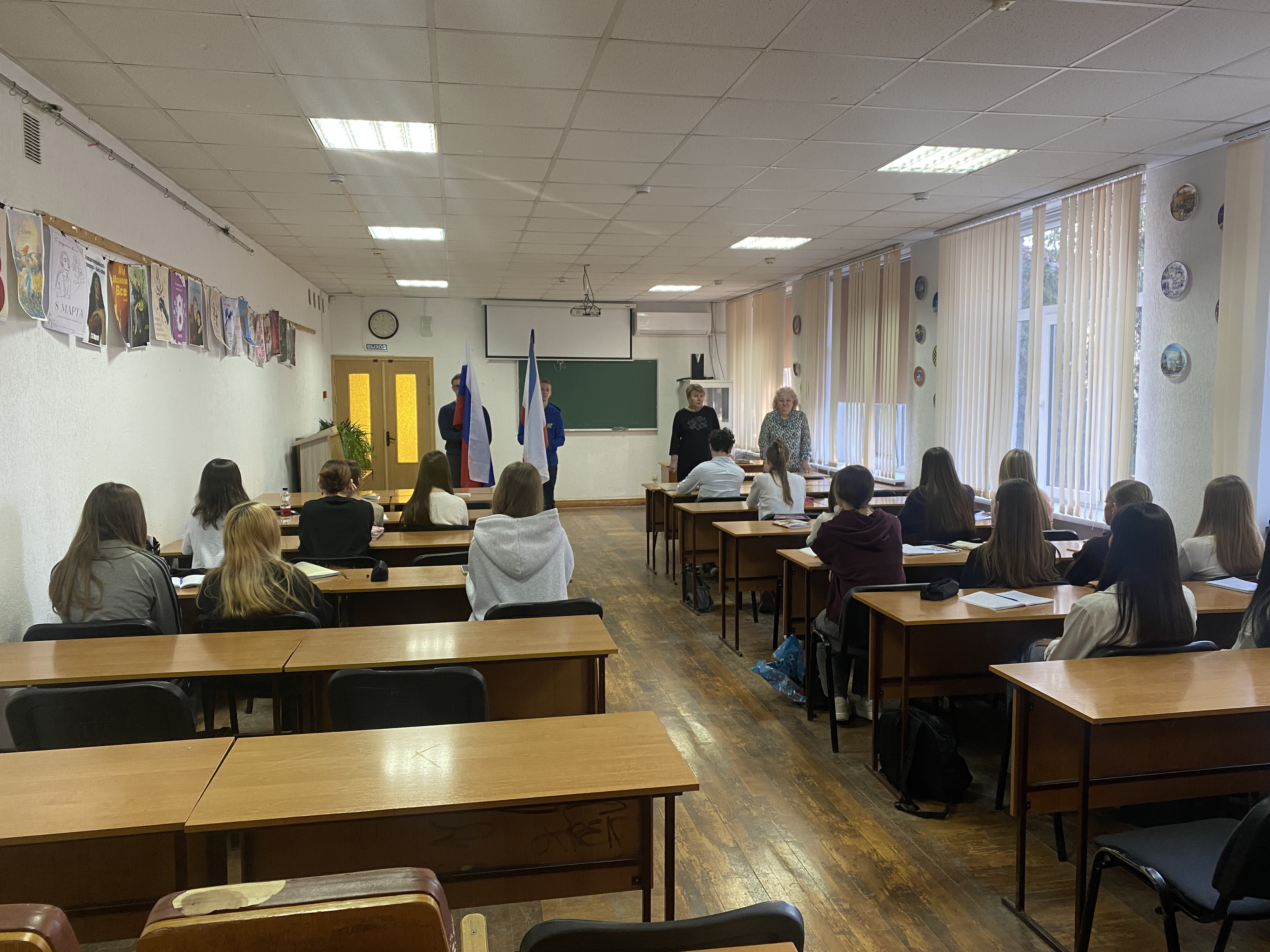 Директор колледжа Гавриленко Юлия Михайловна рассказала студентам об итогах прошедшей недели и пожелала плодотворной и успешной текущей недели.