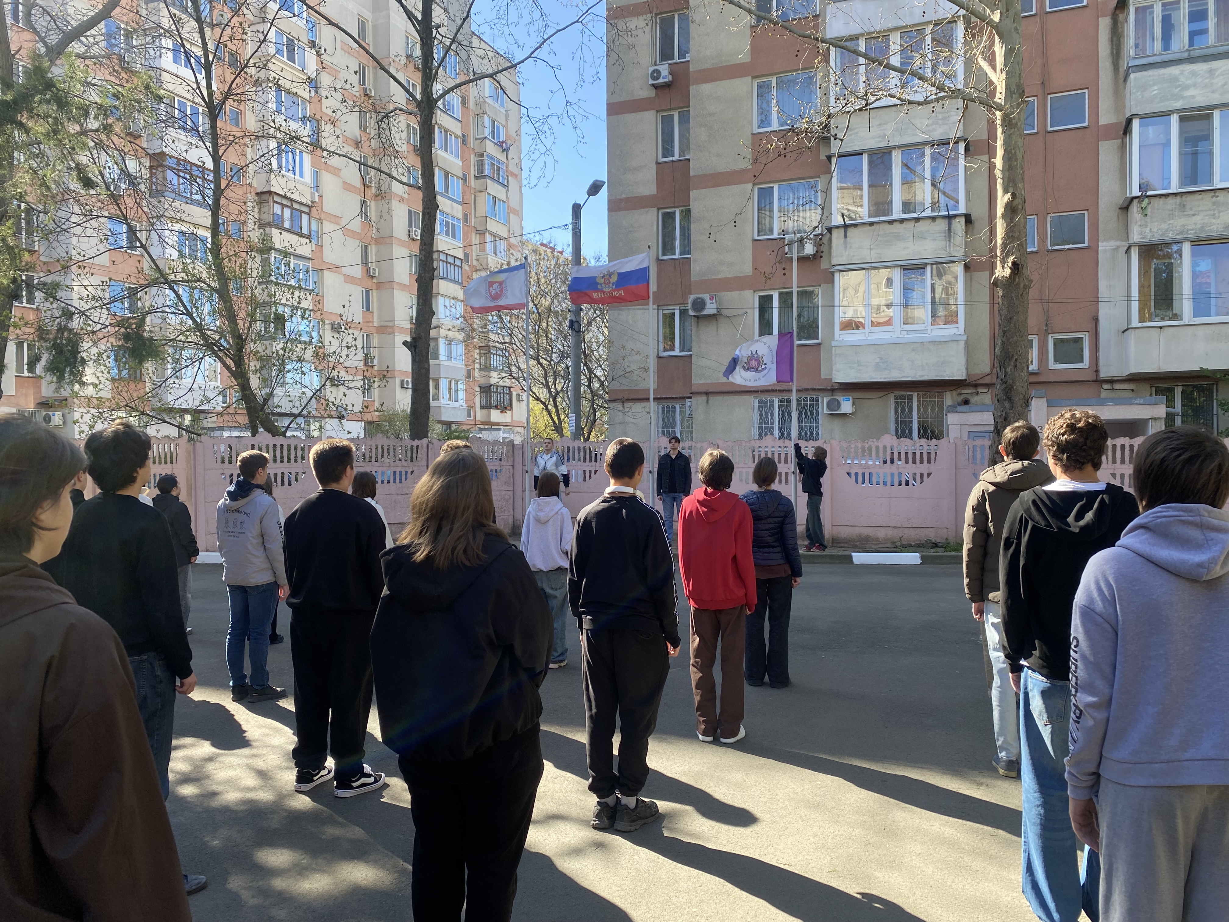 27 апреля 2026 года, понедельник, начался в Таврическом колледже с торжественного поднятия государственных флагов.