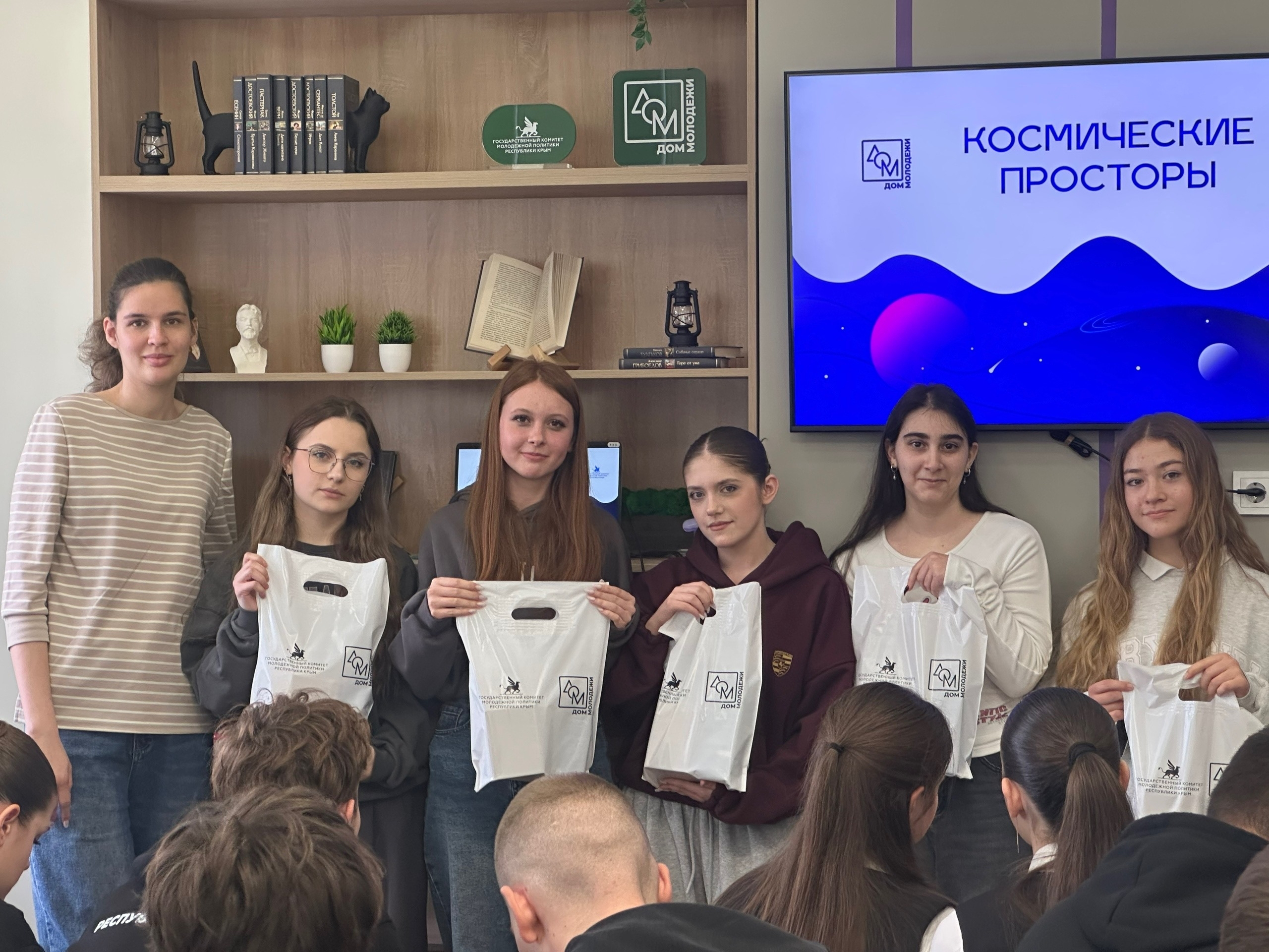 Также в рамках события прошла увлекательная викторина «Космические просторы», которую провели специалисты Центрального зонального центра «Дома Молодежи». Участники смогли проверить свои знания о космосе, истории полётов и выдающихся личностях, открывших человечеству путь к звёздам.