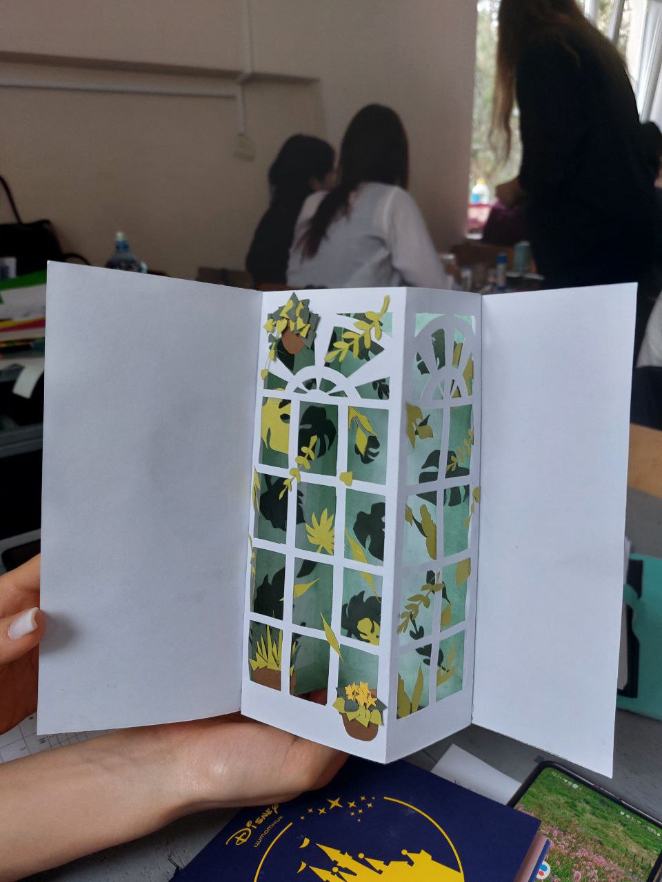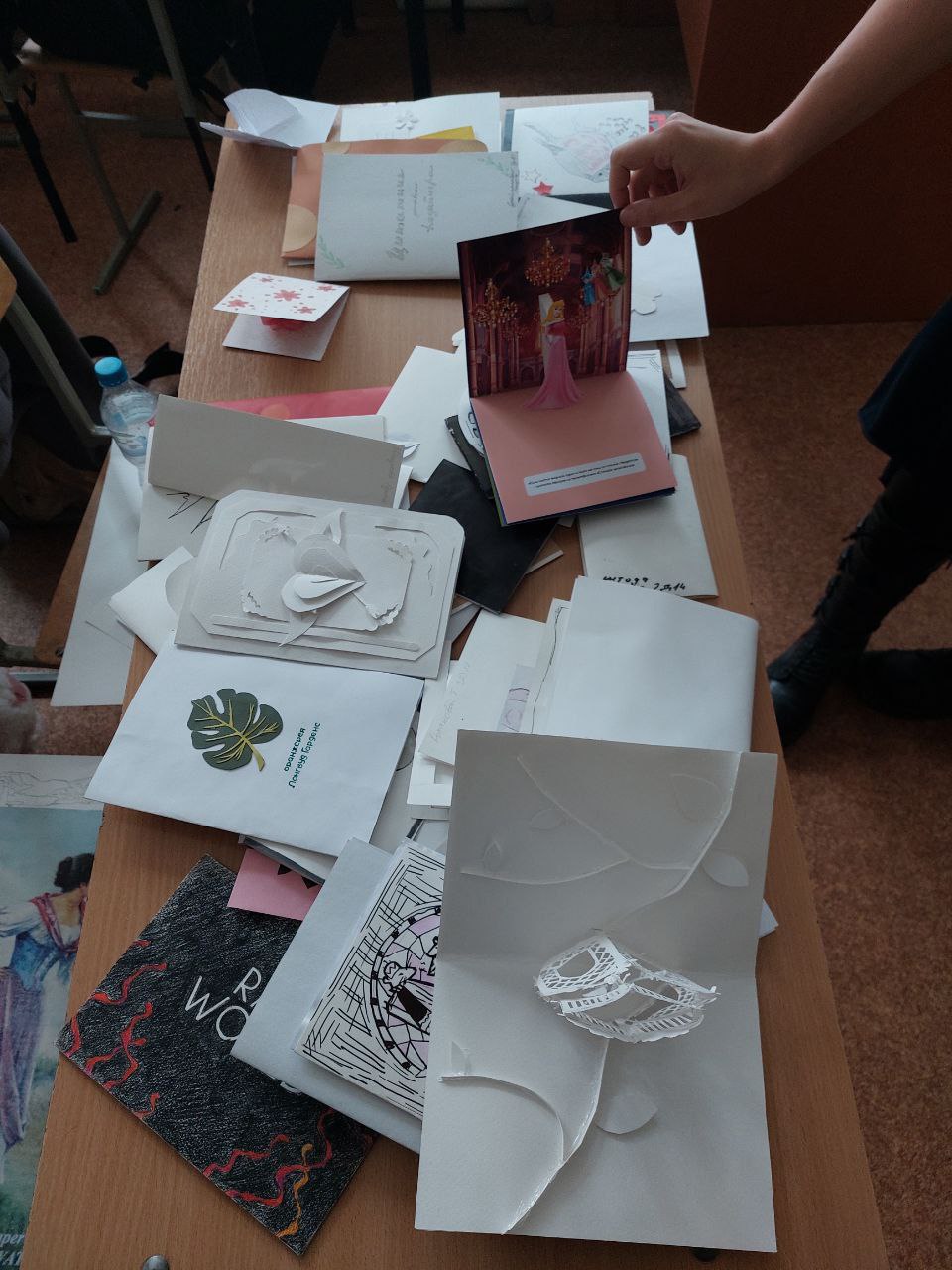 Ребята узнали немного истории возникновения открыток и бумажного конструирования, а также разработали свои варианты открыток с объемными складными конструкциями. Каждый студент проявил свои творческие качества и практические навыки и добился отличного итогового результата — все эскизы и готовые работы получились интересными и яркими.