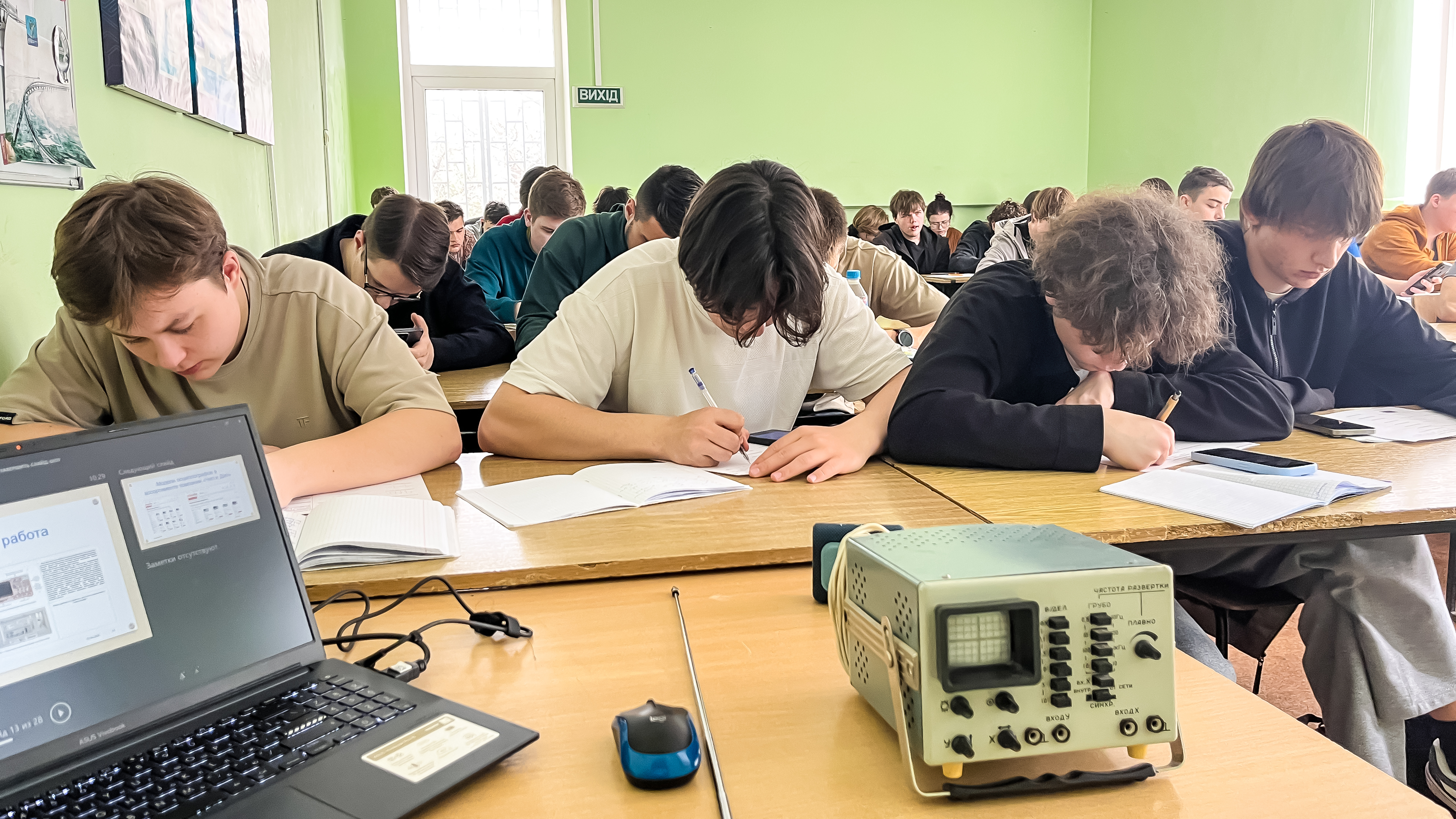 Во время учебного занятия были изучены технические характеристики двухканального цифрового осциллографа АКИП-4102, двухканального планшетного осциллографа MicsigSTO1152C Plus, USB осциллографа ZET 302, а также проведен обзор возможностей осциллографов серии Infiniium MXR.