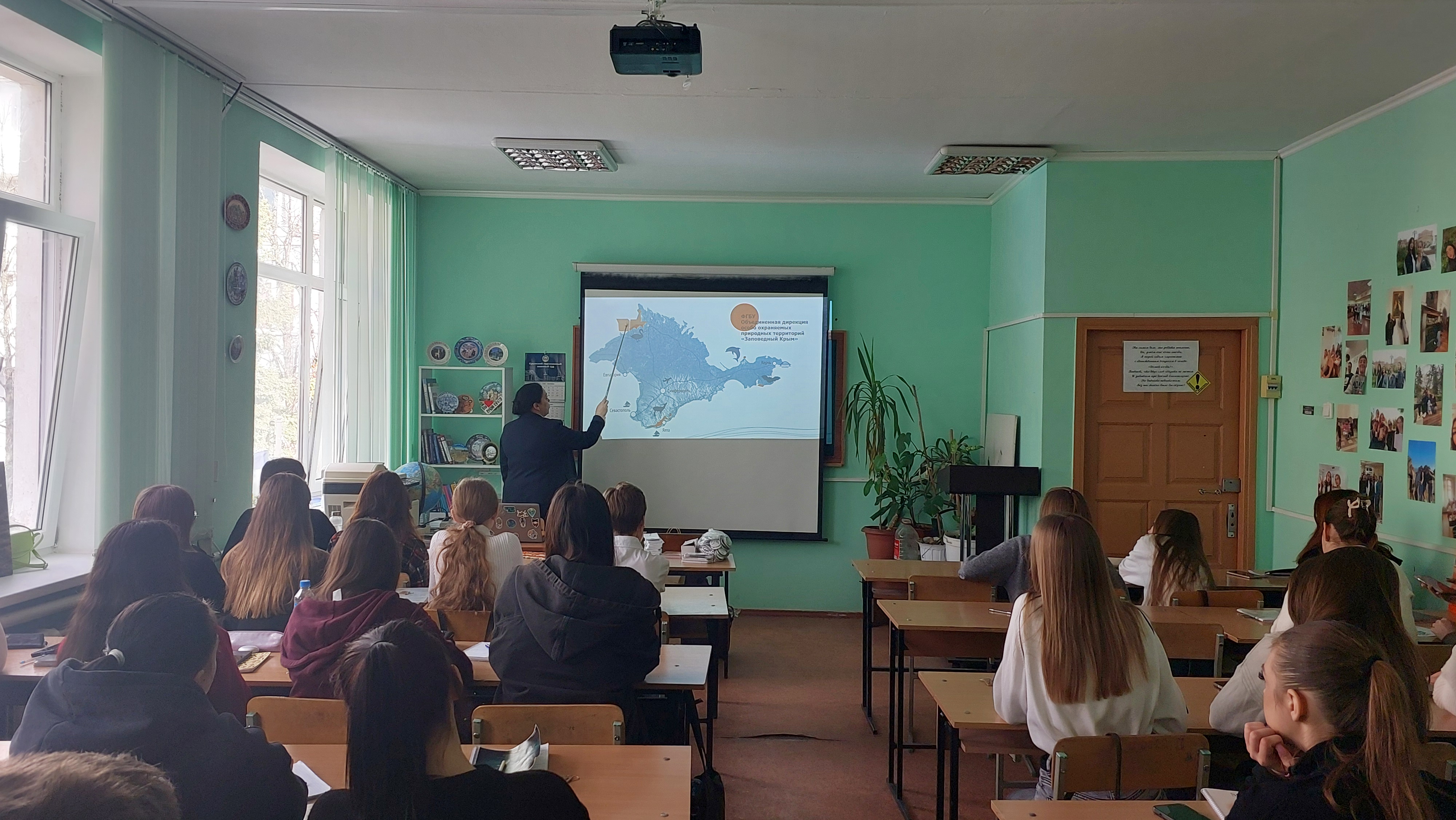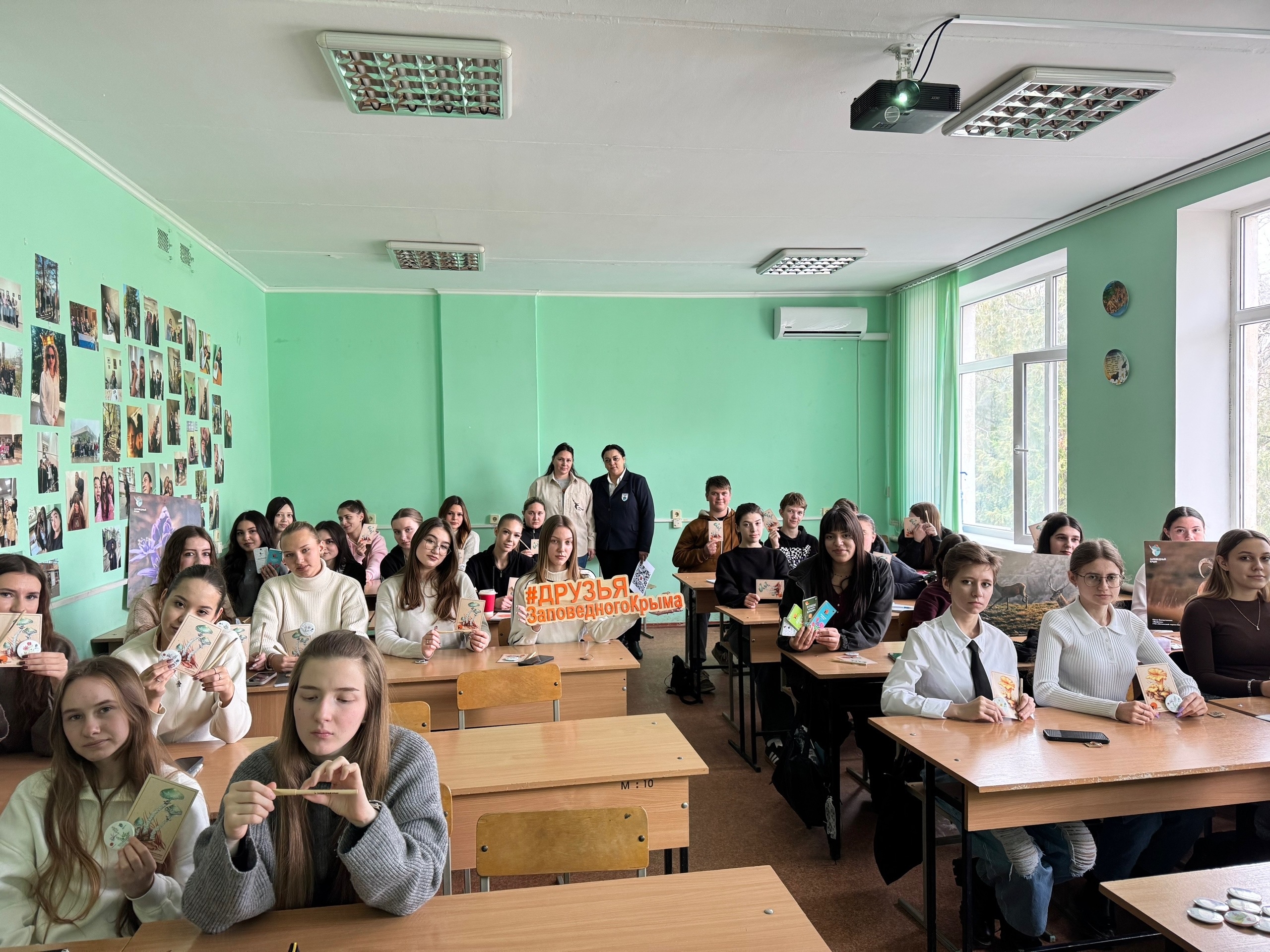 Специалисты провели ознакомительную беседу про историю заповедного дела в России и Крыму, особо охраняемые природные территории Крыма, которые входят в состав «Заповедного Крыма», про организацию и проведение научных исследований, охрану природных территорий для сохранения биологического разнообразия, экологическое просвещение и развитие познавательного туризма, а также обозначили исторические туристские маршруты «Заповедного Крыма».