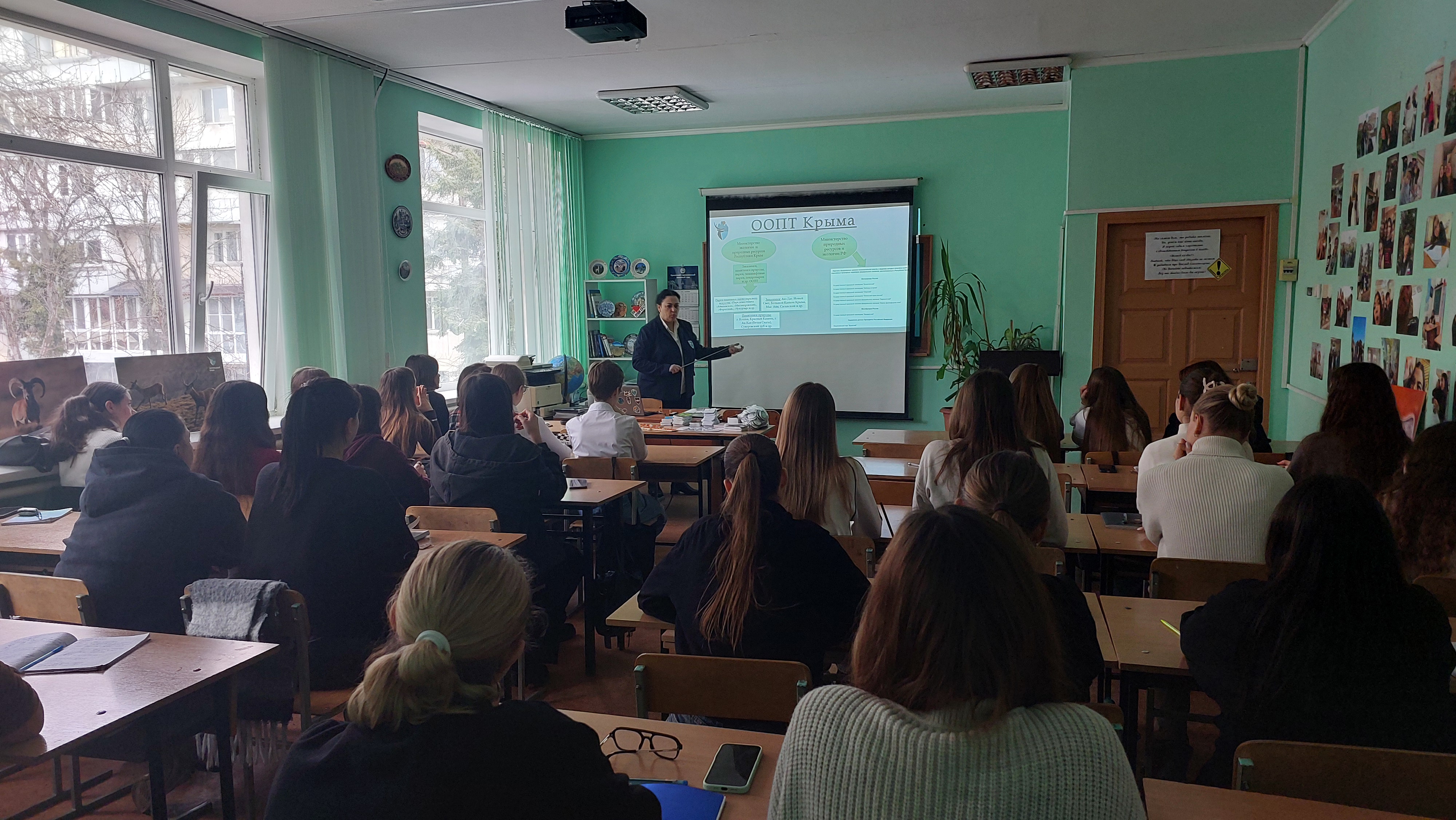 Ко Дню рождения Ялтинского горно-лесного заповедника в рамках изучения дисциплины «Туристские ресурсы России» для групп 4Т23, 4Т24 состоялась интересная встреча с представителями организации «Заповедный Крым». К нам в гости приехали Дышлюк Ю.В. — начальник отдела экологического просвещения, Лютц А.С. — главный специалист отдела экологического просвещения.