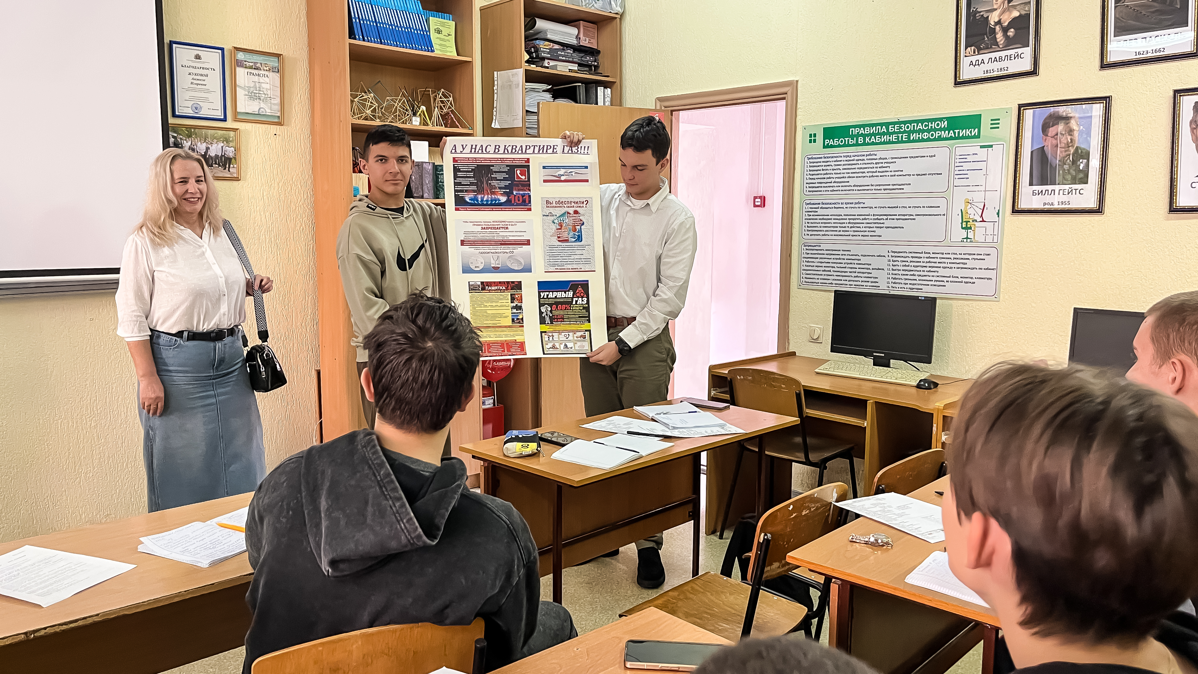 Обучающимся напомнили о том, что при выявлении запаха газа в квартире необходимо немедленно сообщить в аварийно-диспетчерскую службу по телефону 104 об утечке газа, ответить на все вопросы, прослушать инструктаж о том, что нужно делать в аварийной ситуации, а также выполнить все требования и рекомендации диспетчера, покинуть загазованное помещение и ожидать приезда аварийной бригады.