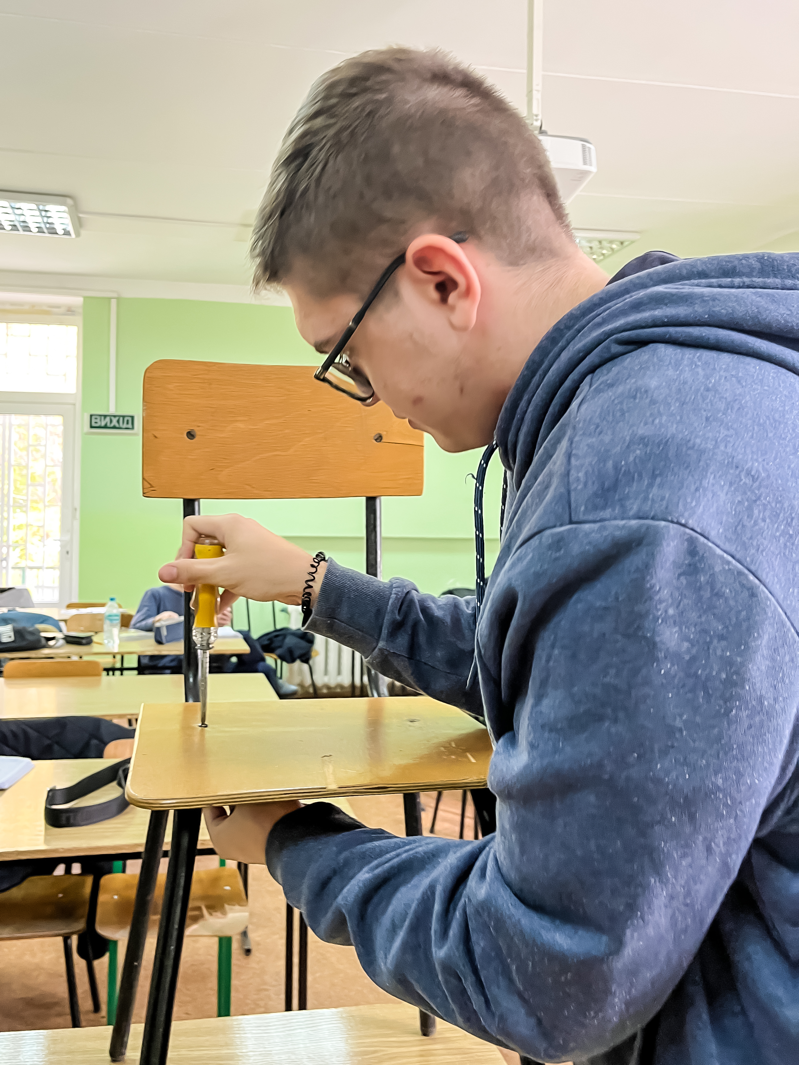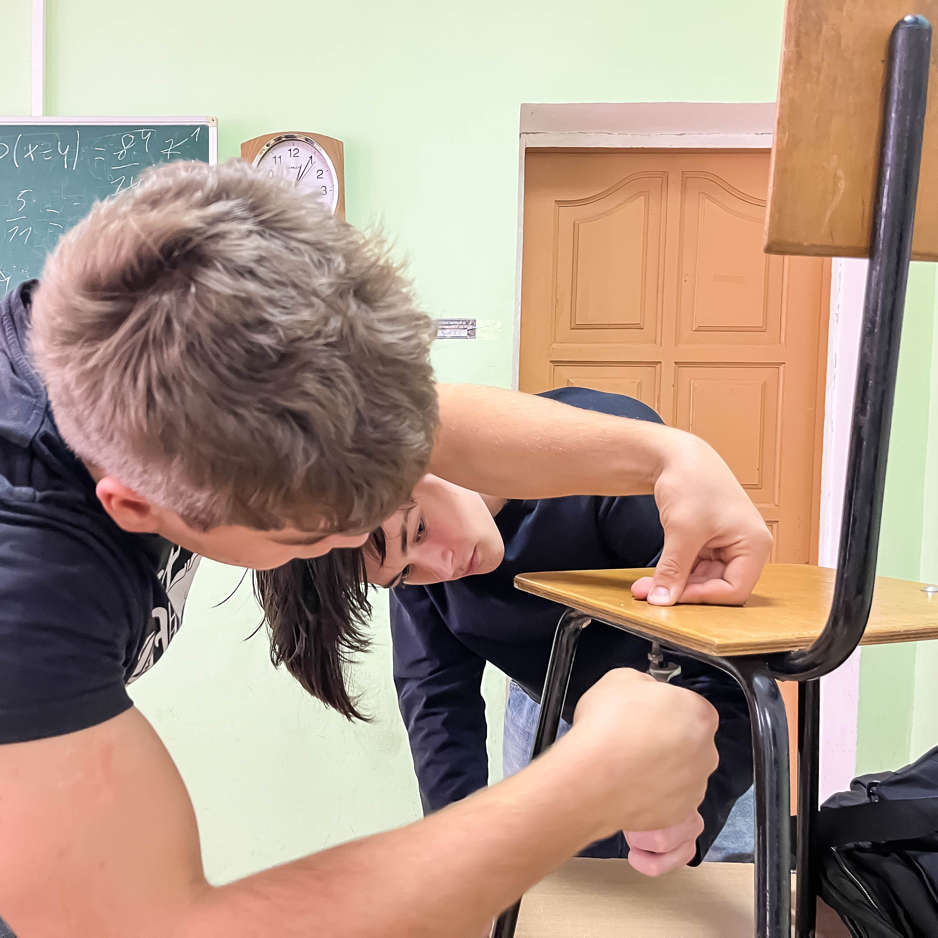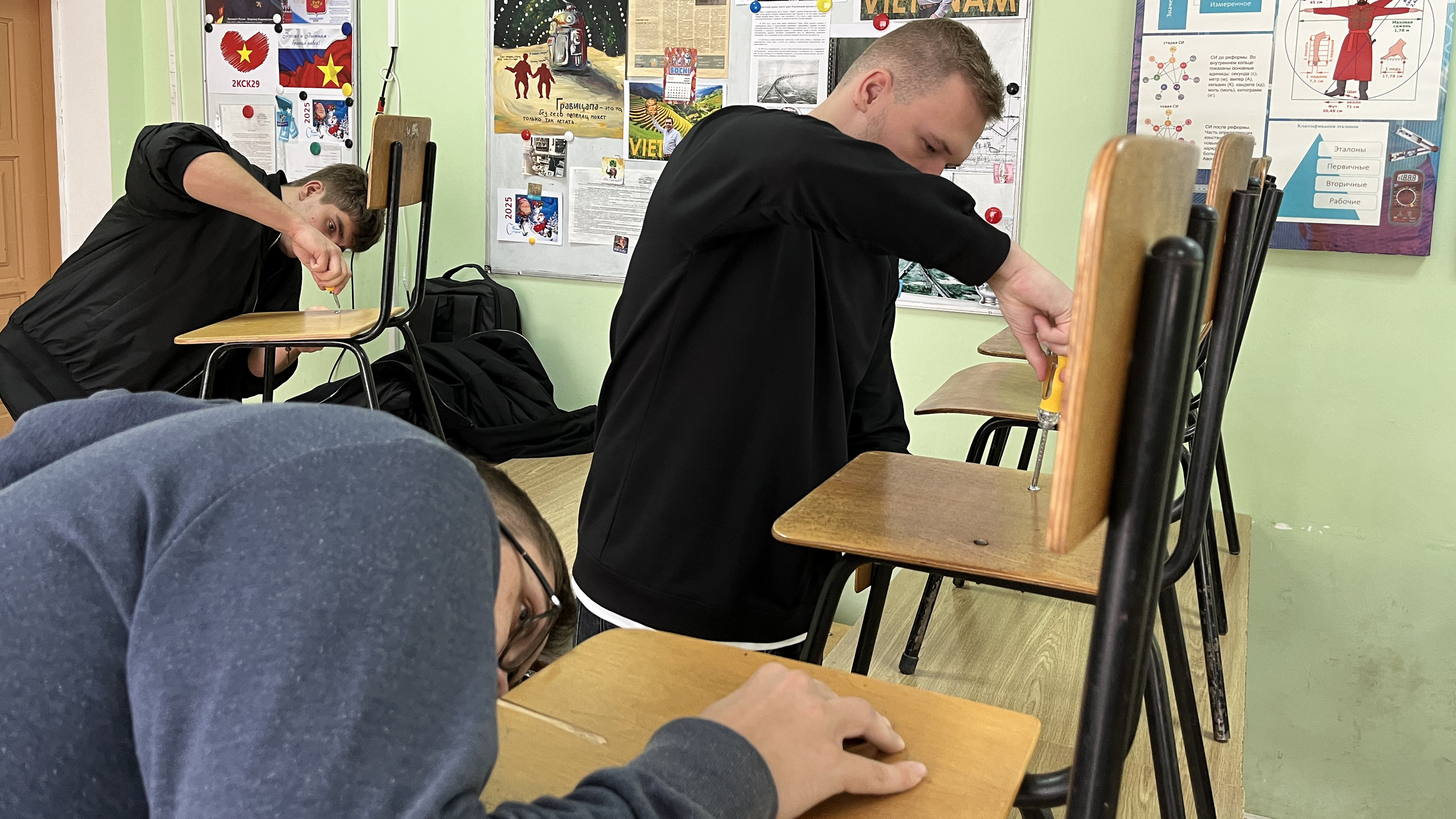 Студенты группы 3КСК29, куратор группы — преподаватель высшей категории Соловьев Валерий Иванович, отремонтировали поломанные стулья в закреплённой за группой ауд. №15, корпуса на ул. Железнодорожной.