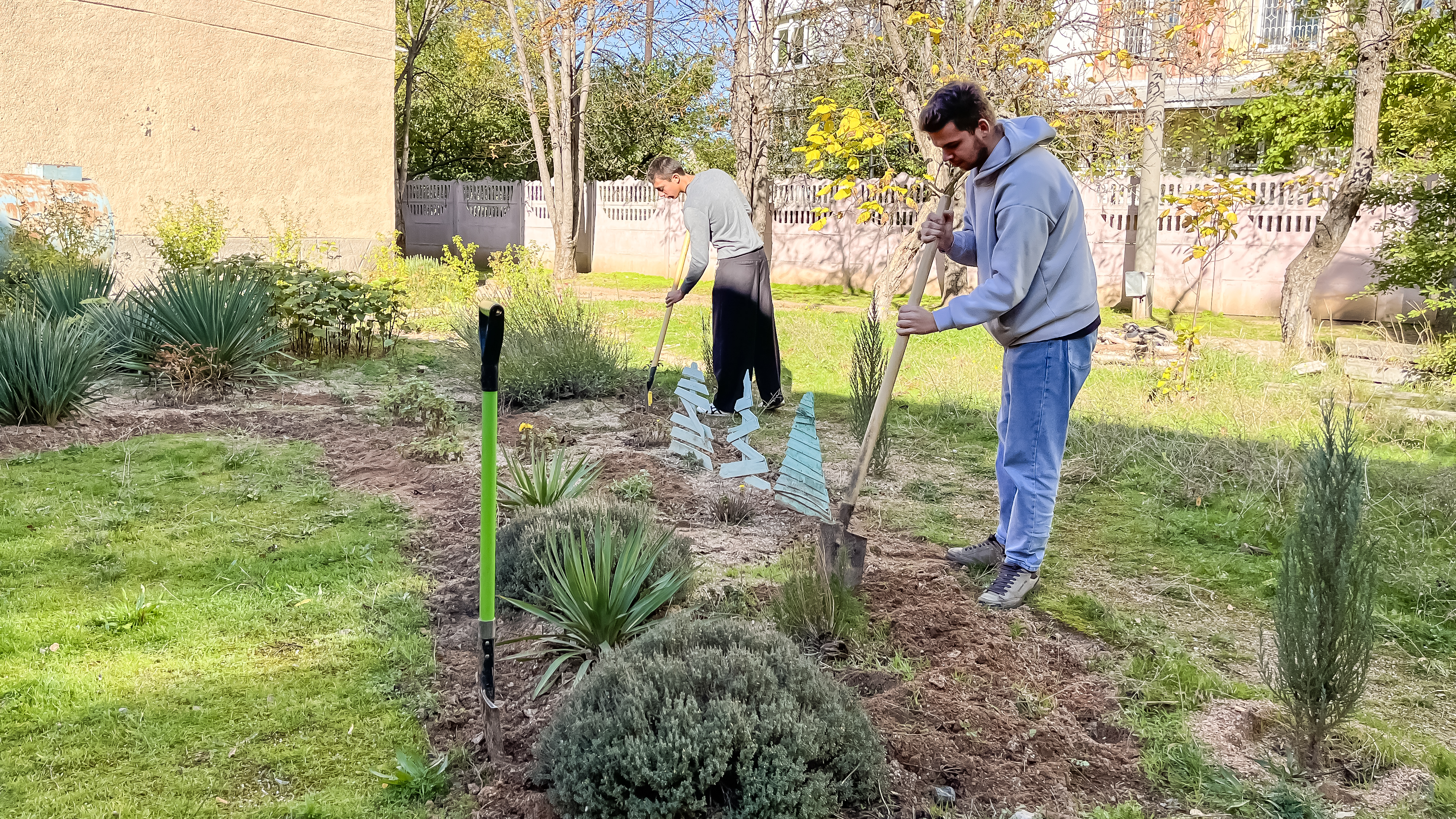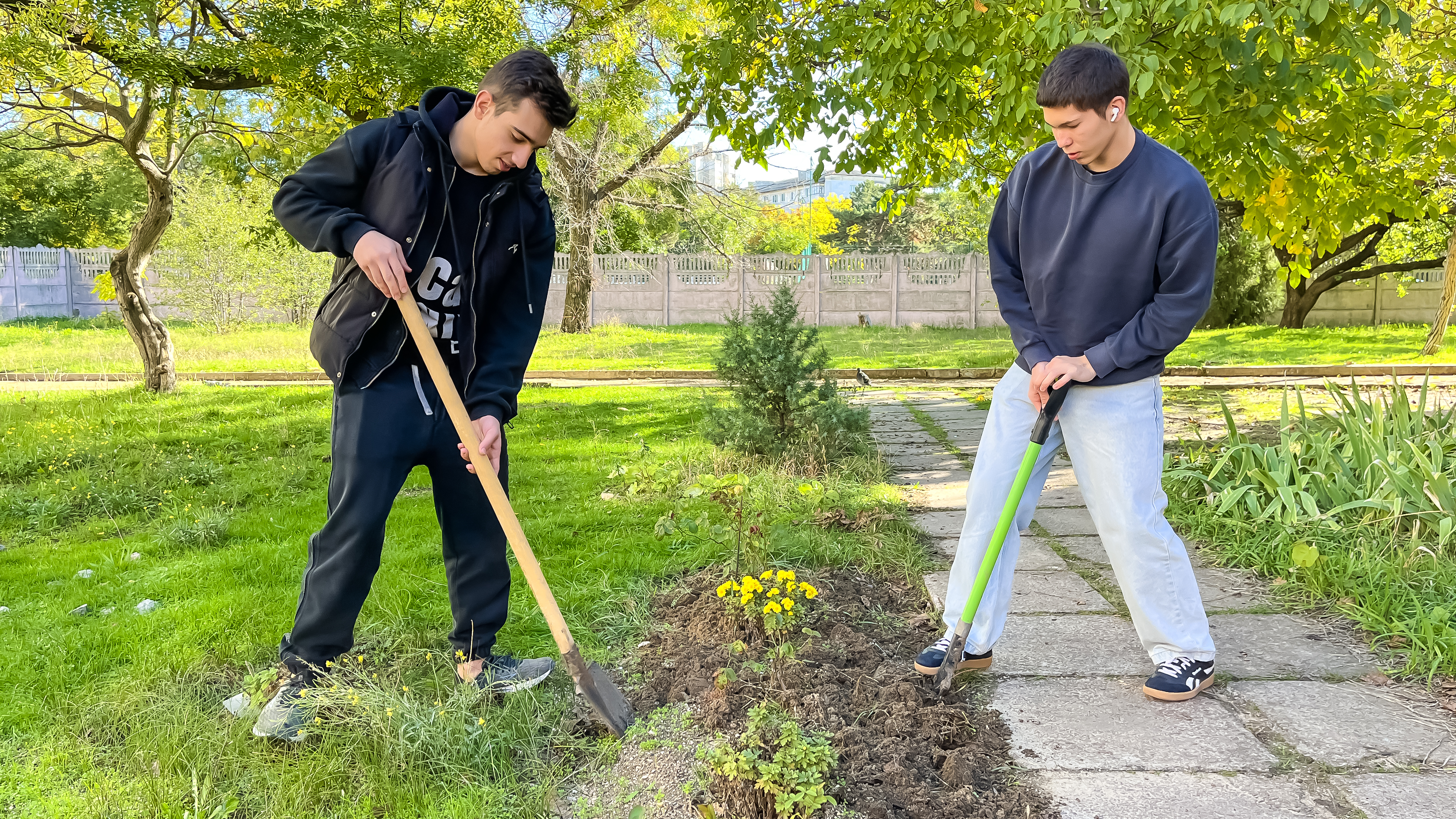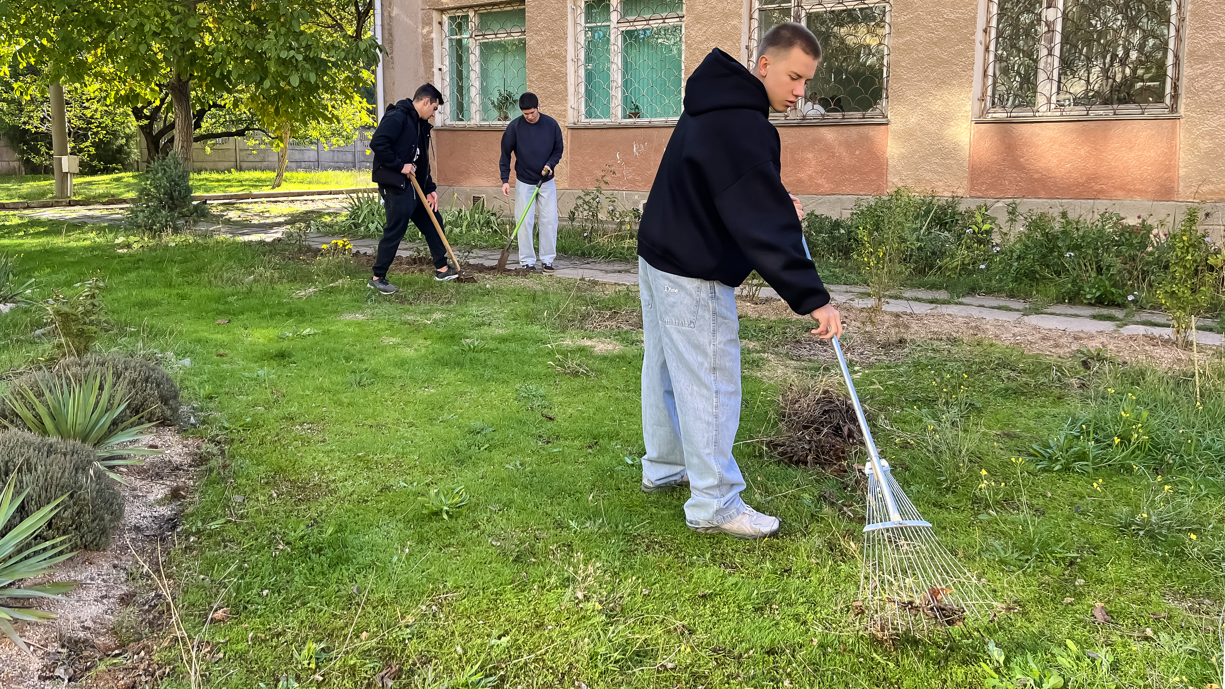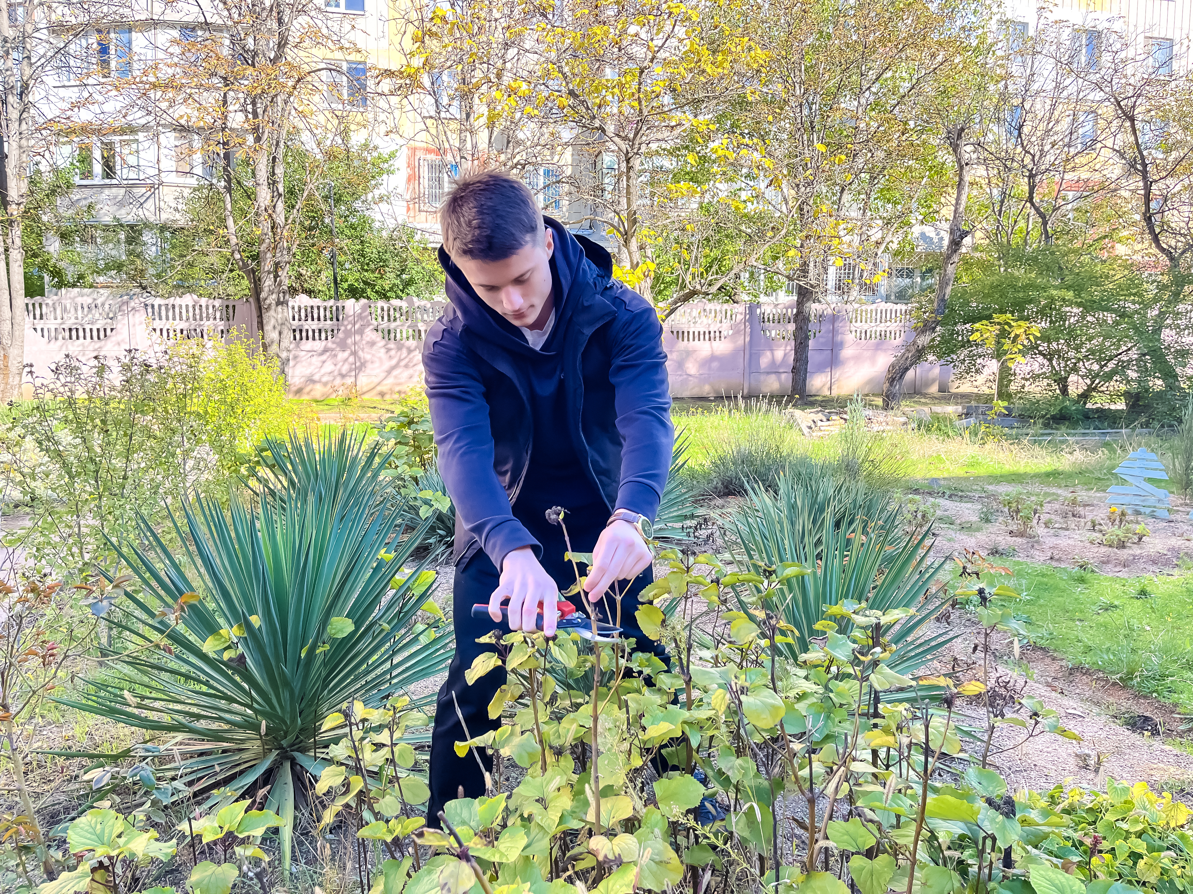 Студенты группы 3КСК29, под руководством куратора, преподавателя высшей категории Соловьева Валерия Ивановича, в свободное от учебных занятий время,подготавливают к зиме, закреплённый за группой, на территории колледжа, земельный участок. Обрезают сухие ветки, собирают опавшую листву, перекапывают землю.