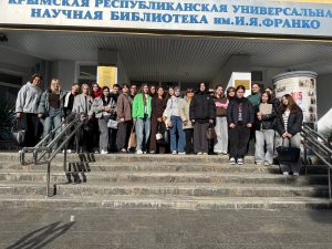 14.10.25 обучающиеся группы 1Т29 вместе с куратором Малюга Г.Г. посетили ГБУК РК «Крымскую республиканскую универсальную научную библиотеку им. И.Я. Франко» с целью участия в викторине «Что?Где?Как?».