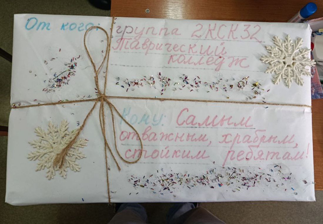 21.12.2025 г. была передана часть новогодних подарков для бойцов 810-ой бригады морской пехоты Черноморского флота от обучающихся, их родителей и сотрудников Таврического колледжа.