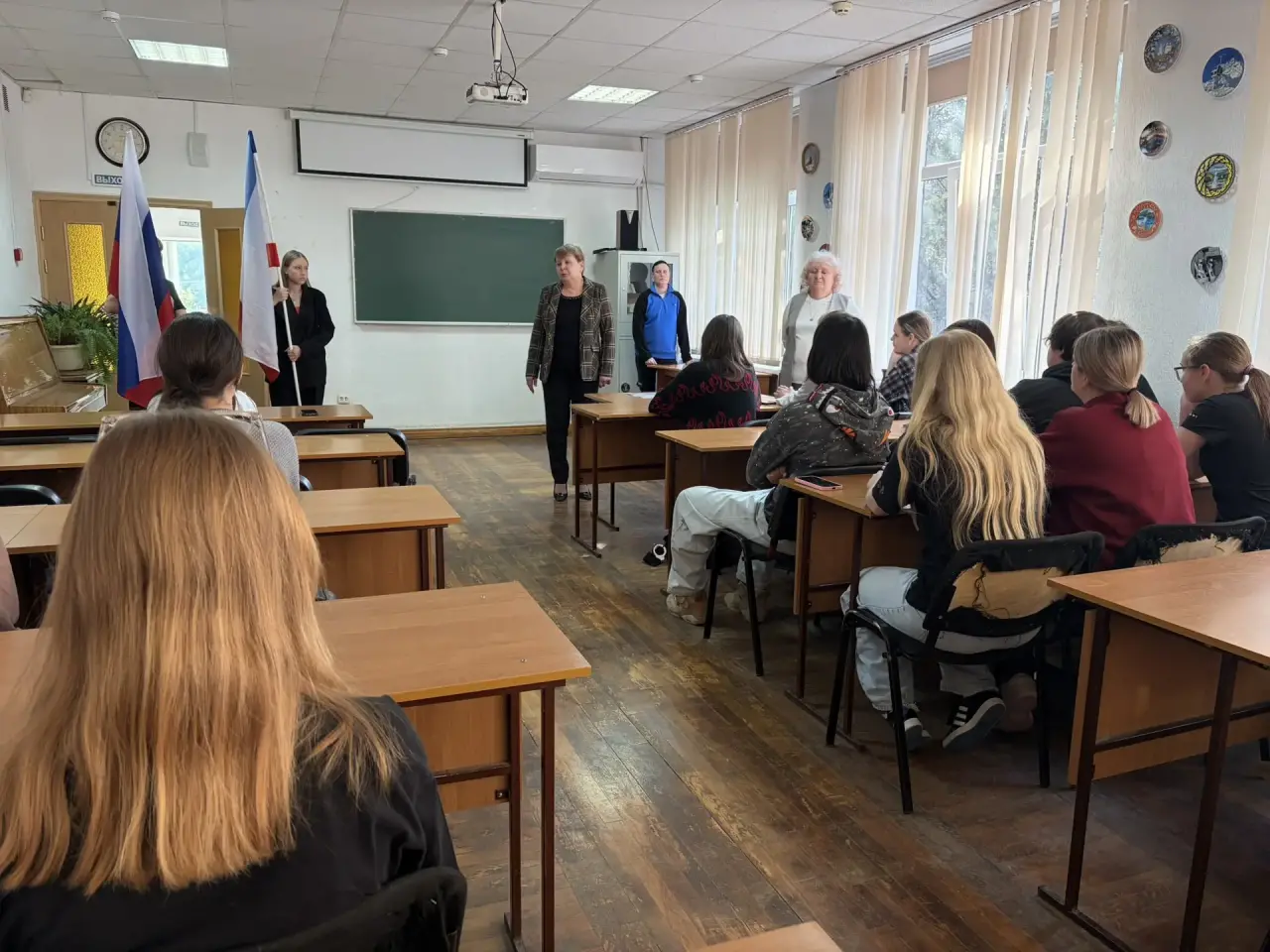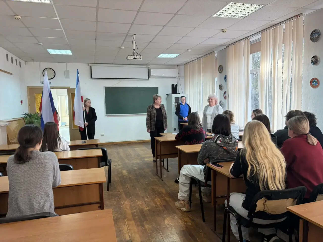 23 марта 2026 г., понедельник, как всегда, начался с торжественного поднятия государственных флагов. Директор колледжа, Гавриленко Юлия Михайловна, напомнила студентам, что 28 марта, колледж проводит День открытых дверей.
