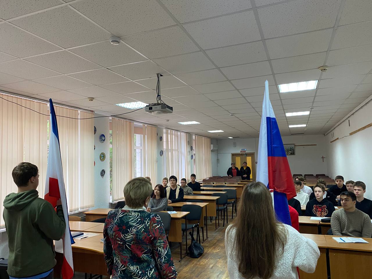 Сегодня, 13 октября, утро понедельника в колледже традиционно началось с торжественной линейки, церемонии выноса Государственного Флага Российской Федерации и Государственного Флага Республики Крым.
