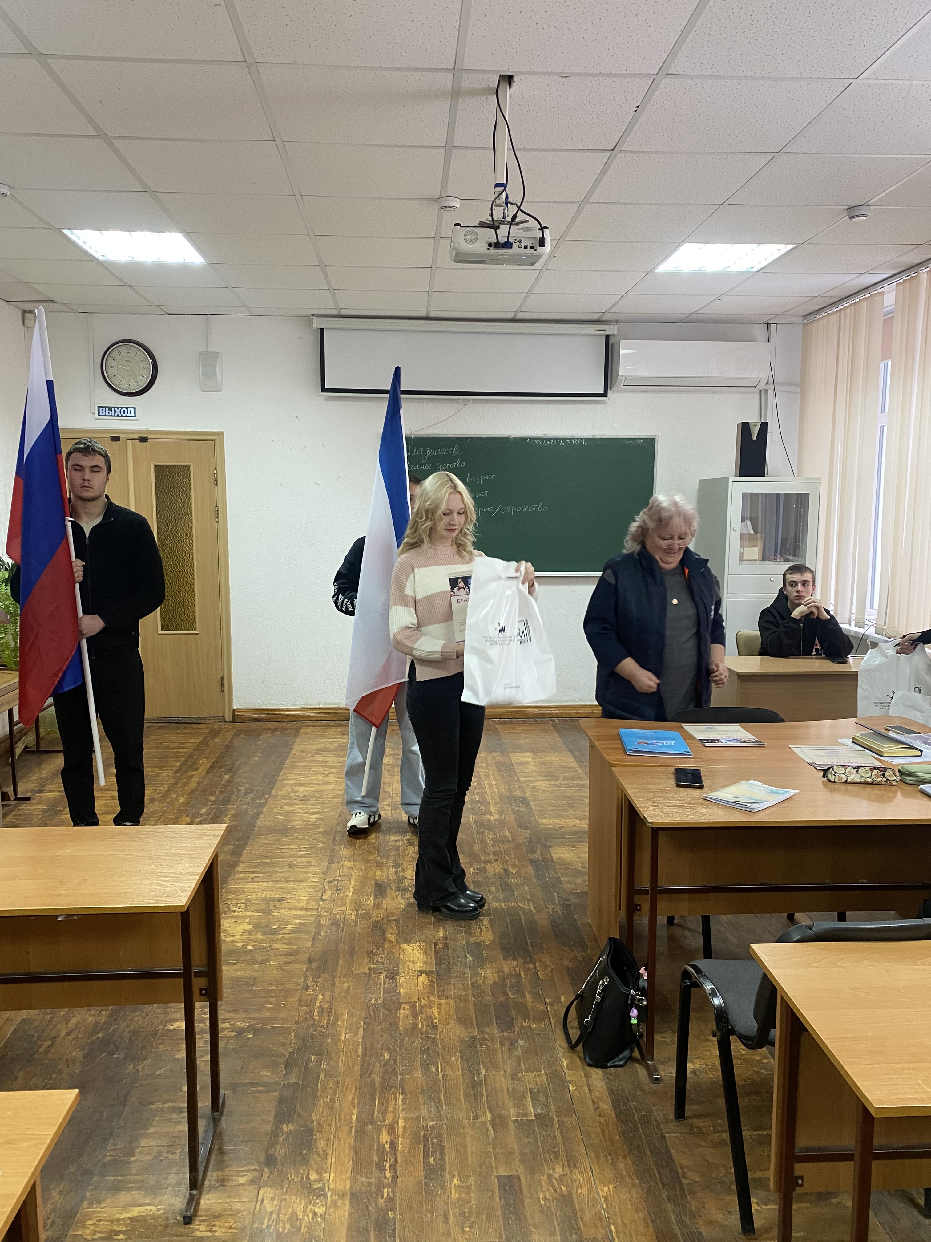 Директор колледжа Гавриленко Юлия Михайловна поблагодарила обучающихся за их активное участие в гражданско-патриотической деятельности (руководитель Бородина К. А.).