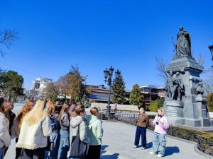 У студентов 4 курса специальности «Туризм» сегодня была первая учебная экскурсия по центру Симферополя. Обучающиеся посвятили ее Крымской весне!!