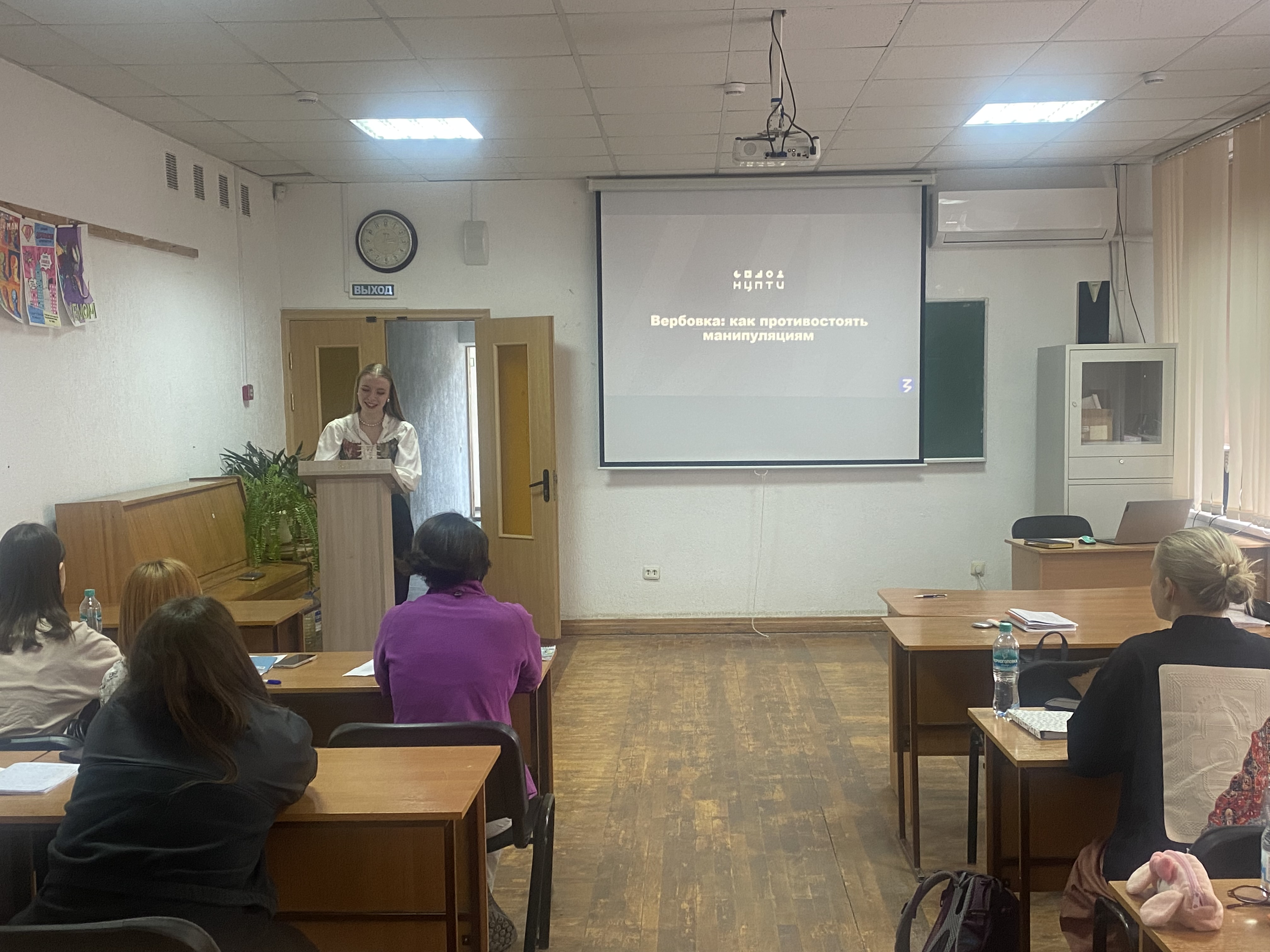 Слово «вербовка» часто кажется чем-то далеким, но манипуляторы могут поджидать нас где угодно. Мария рассказала ребятам о том, как распознать психологические уловки, сохранить холодный рассудок в стрессовой ситуации и не дать собой управлять.