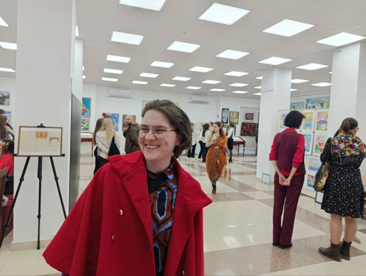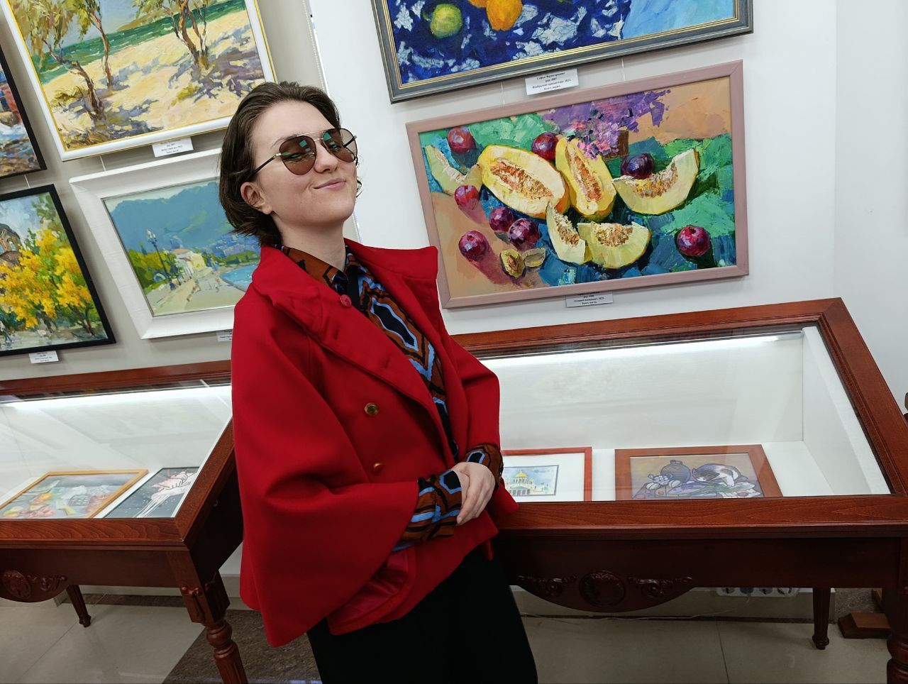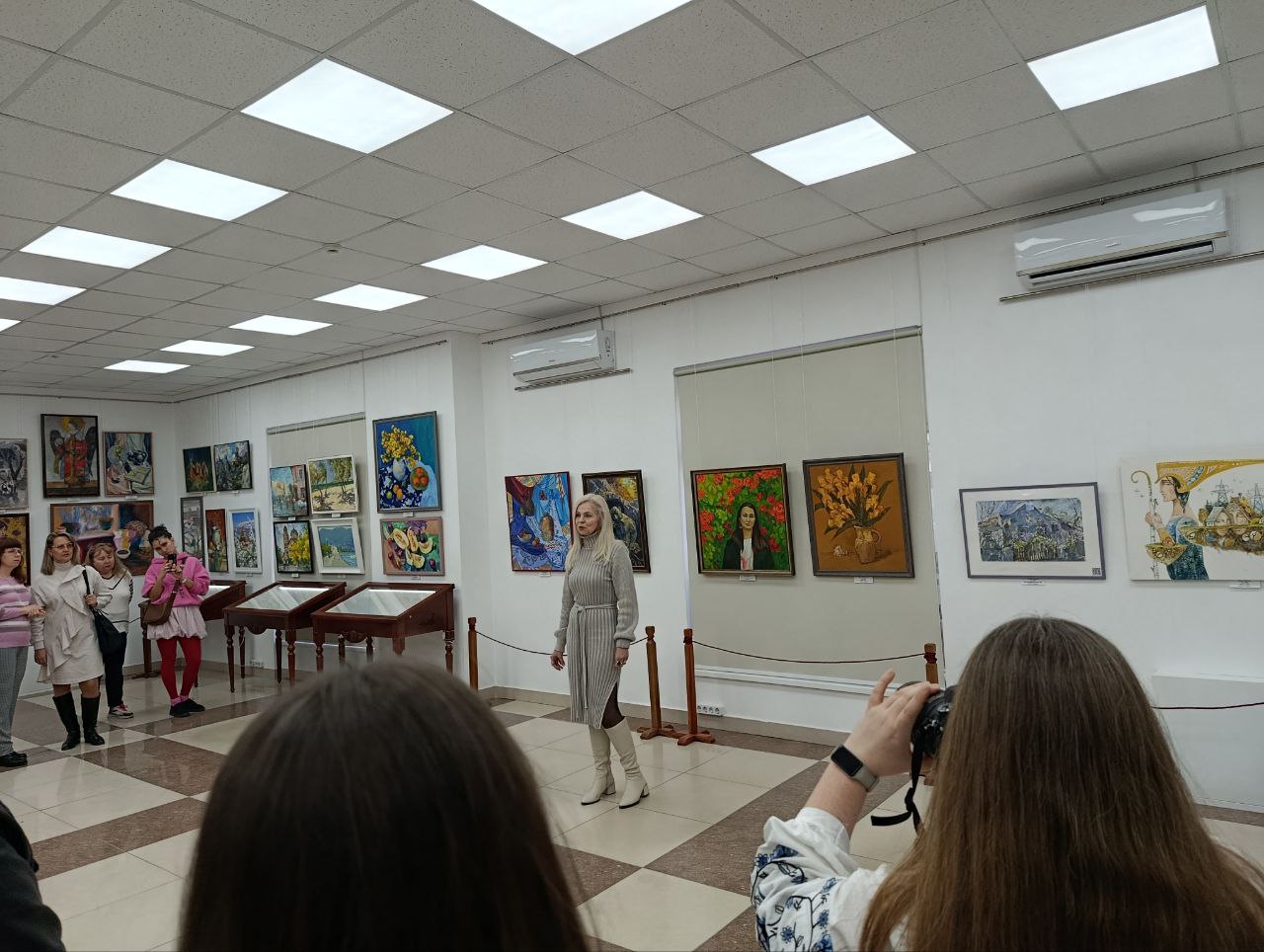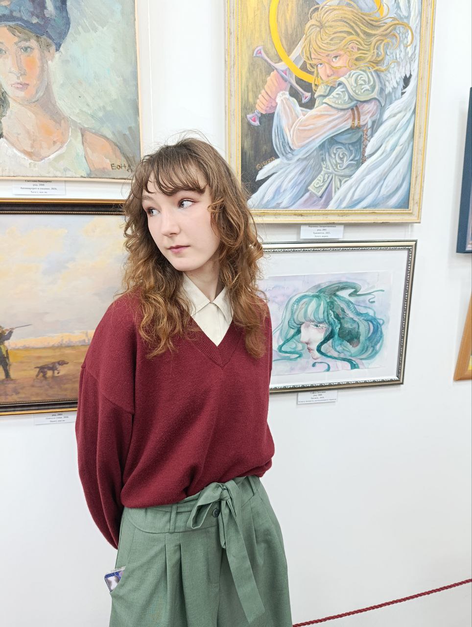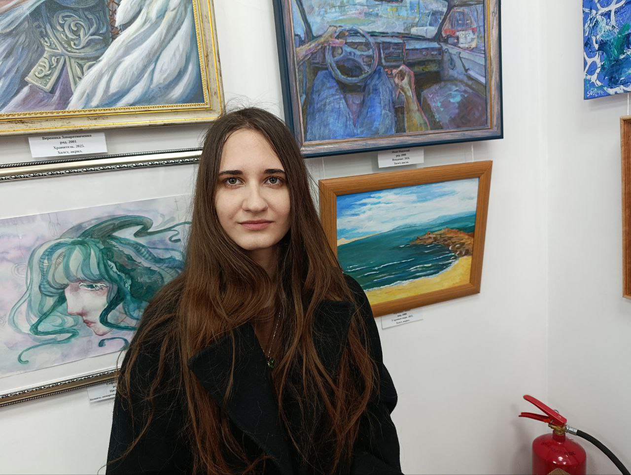 Выставка-конкурс направлена на обмен опытом и впечатлениями между молодыми авторами и студентами разных вузов. Очень приятно было снимать довольных наших юных художников на фоне их работ. Для девочек это первая всекрымская художественная выставка в качестве участников.