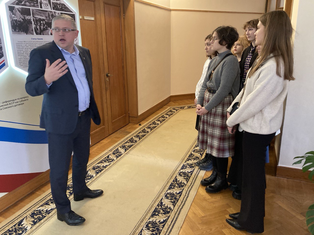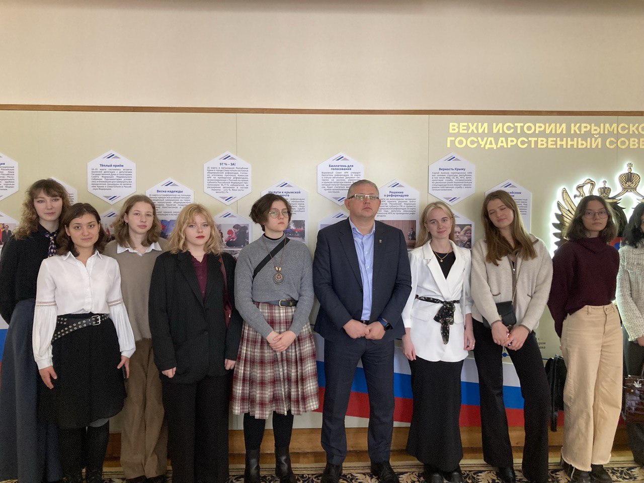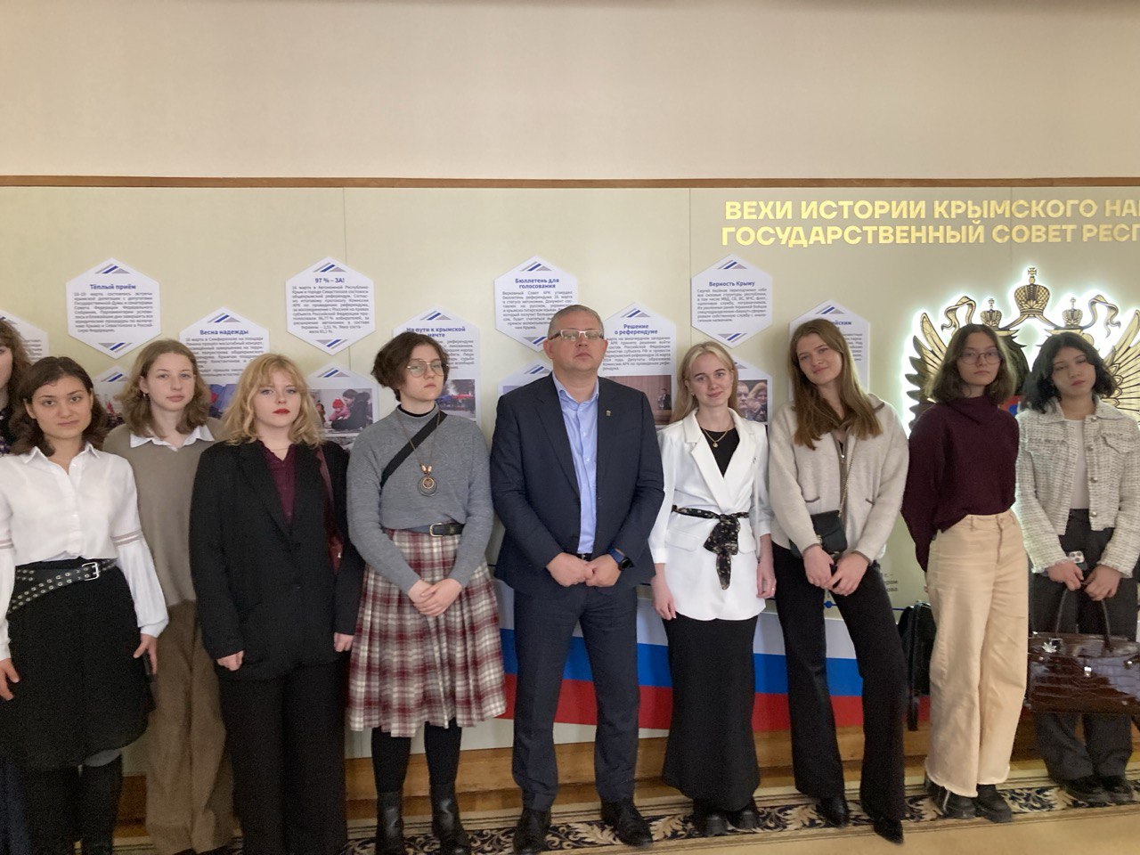 12 декабря 2025 года группа обучающихся 3 курса, специальности «Дизайн (по отраслям)», по приглашению председателя Комитета Государственного Совета Республики Крым по патриотическому воспитанию и молодежной политике Бобкова Владимира Витальевича, посетила Государственный Совет Республики Крым.