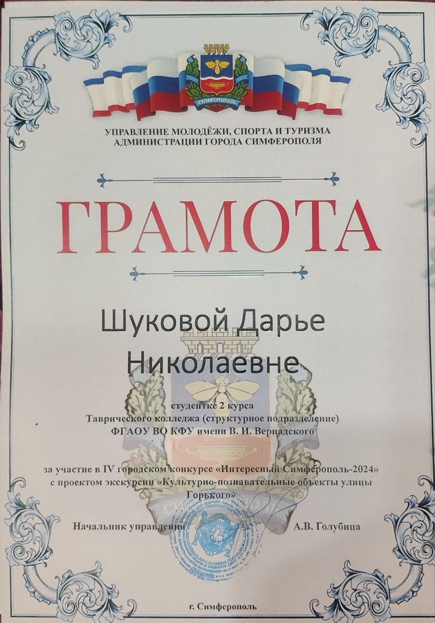 - IV Городской конкурс «Интересный Симферополь – 2024», Грамота.